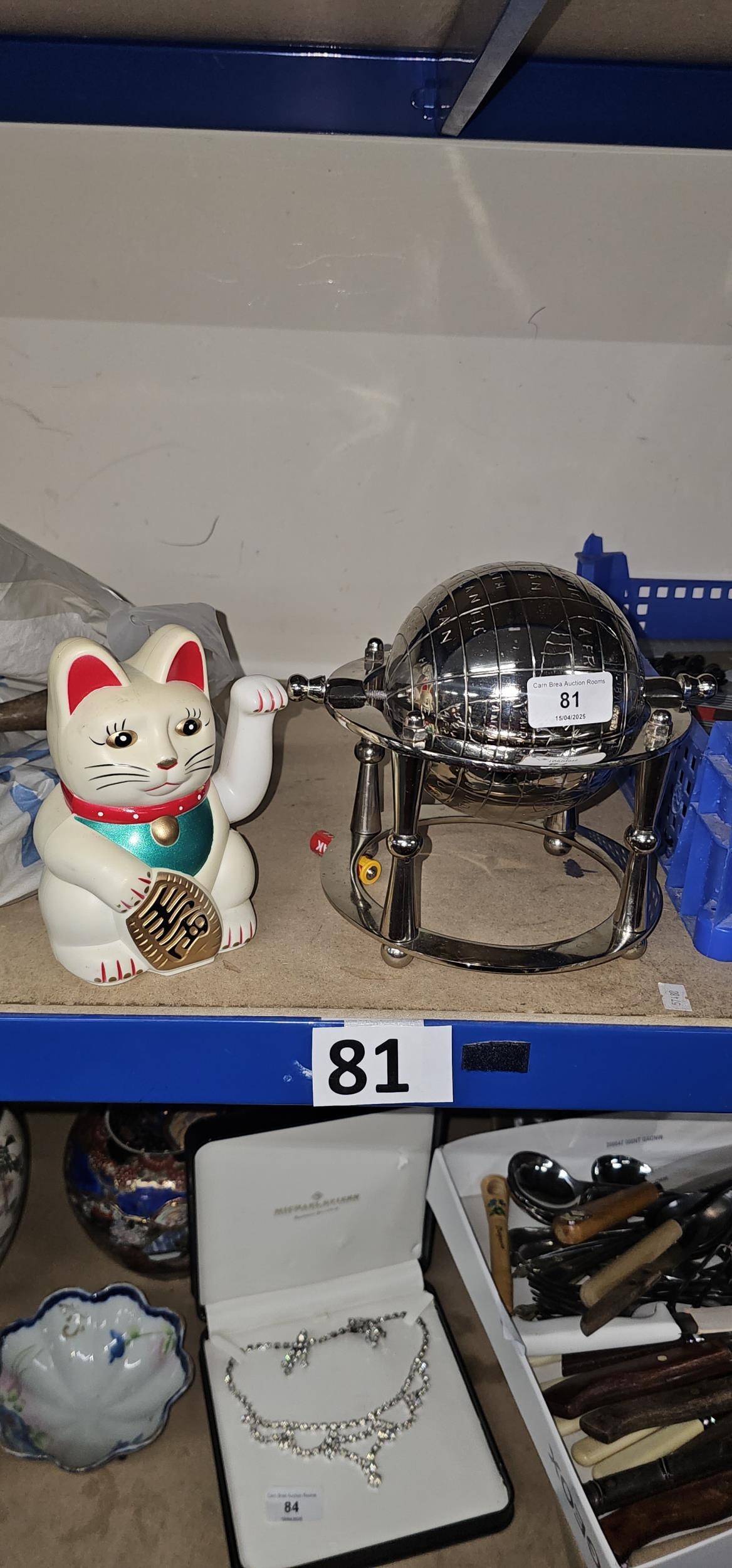 globe & Lucky Cat Waving Arm
