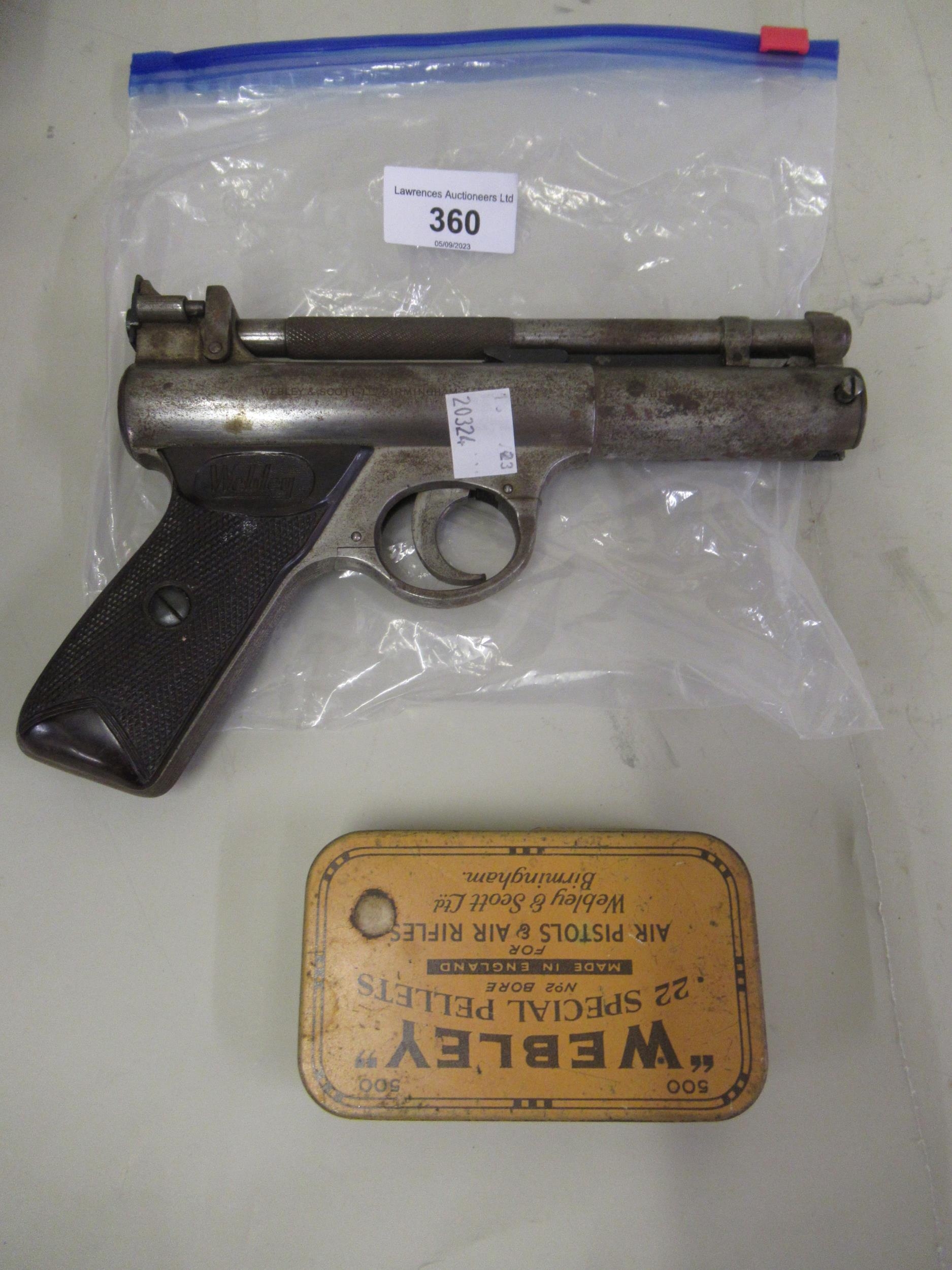 Webley Senior air pistol with tin of various pellets