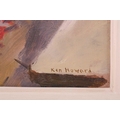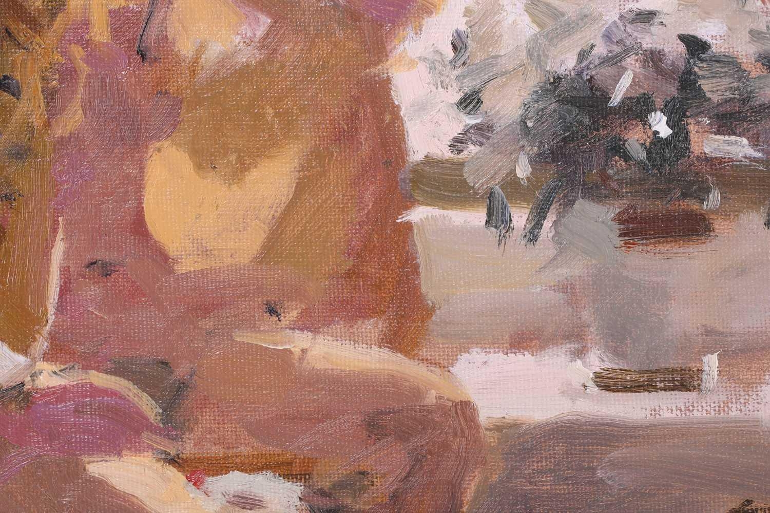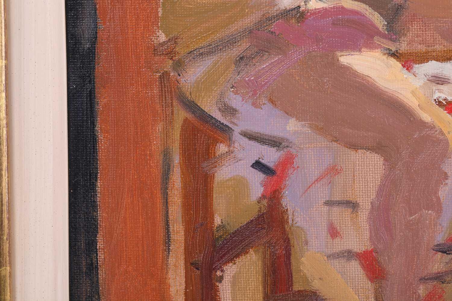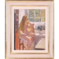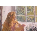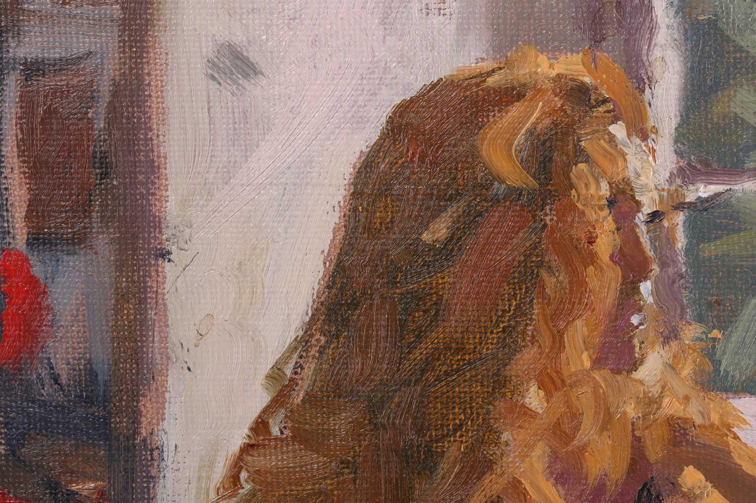 † Ken Howard (1932 - 2022), Artist's model at a window, signed, oil on board, 35 x 27 cm, framed 49 x 40.5 cm