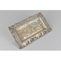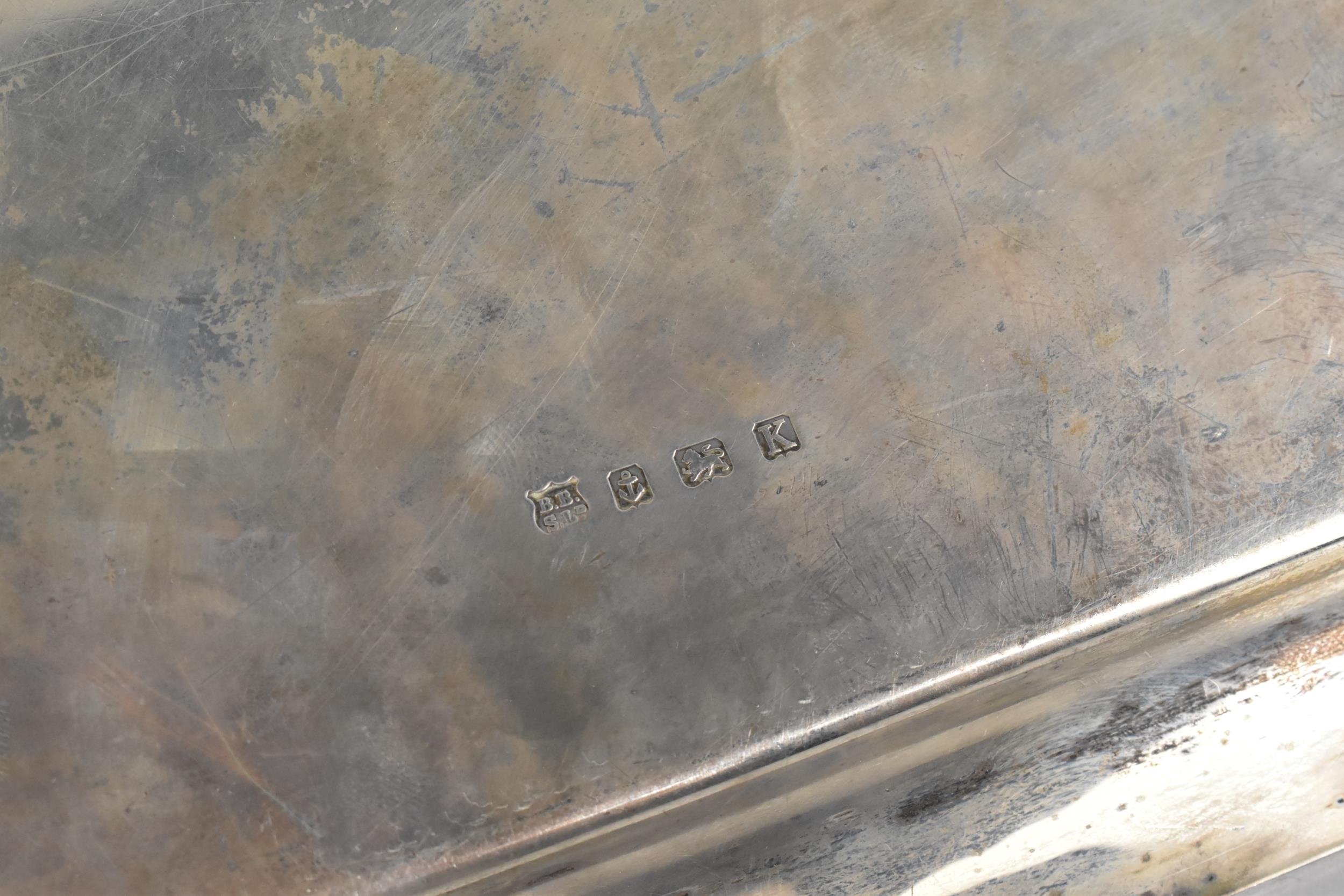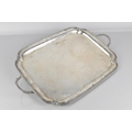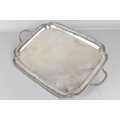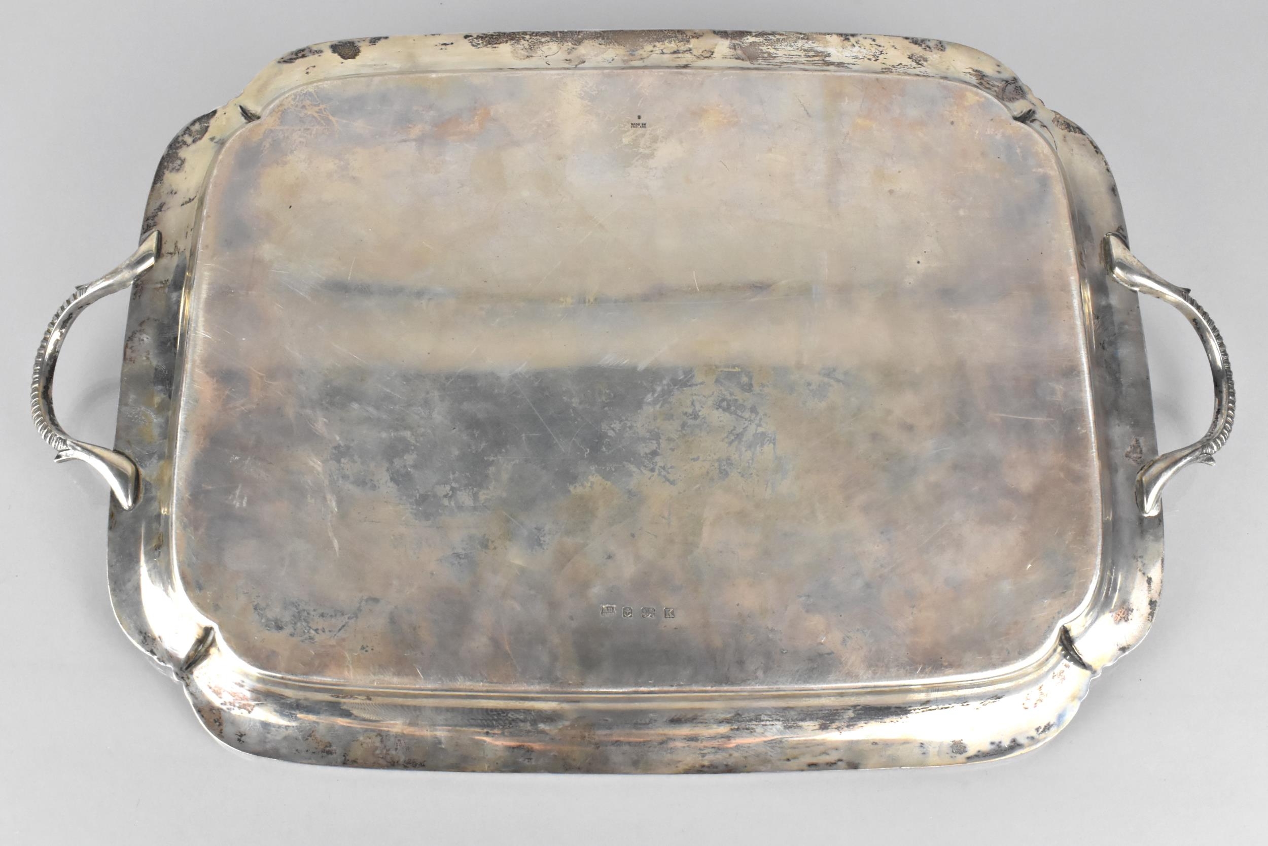 A George V Silver Tray by Barker Brothers Silver Ltd, The Tray with Canted Edges, Gadrooned Trim and Twin Handles, 44x28cms 849gms
