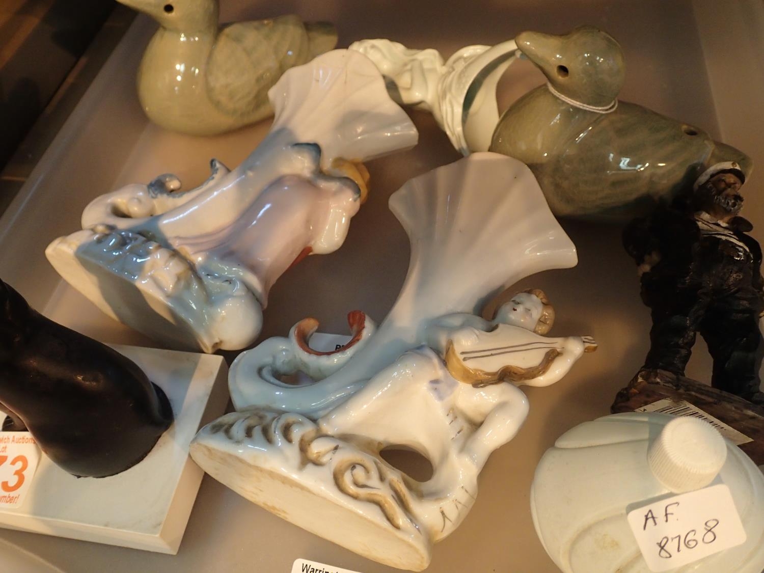 Selection of various ceramics to include two ducks, a seated black cat etc. Not available for in-house P&P, contact Paul O'Hea at Mailboxes on 01925 659133
