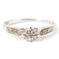 A 9ct white gold diamond solitaire ring with diamond set sho...