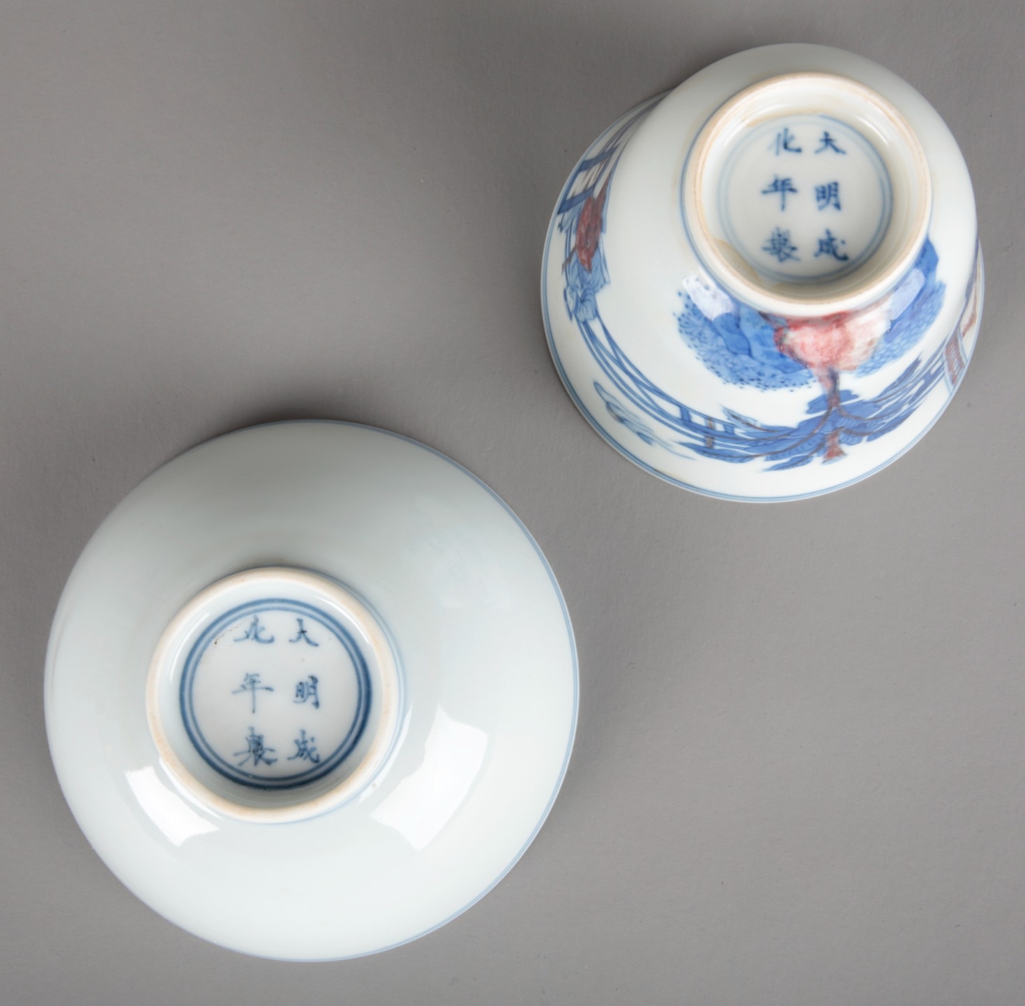 A CHINESE PORCELAIN BLUE, WHITE AND UNDERGLAZE RED TEABOWL