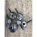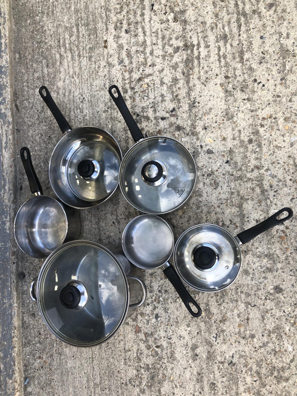 Six stainless saucepans