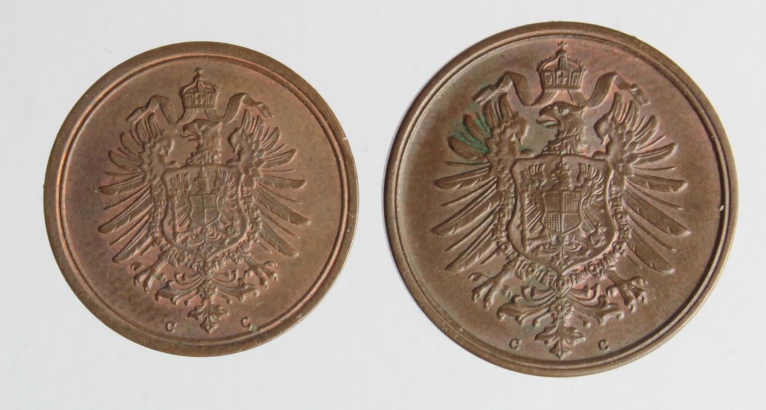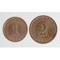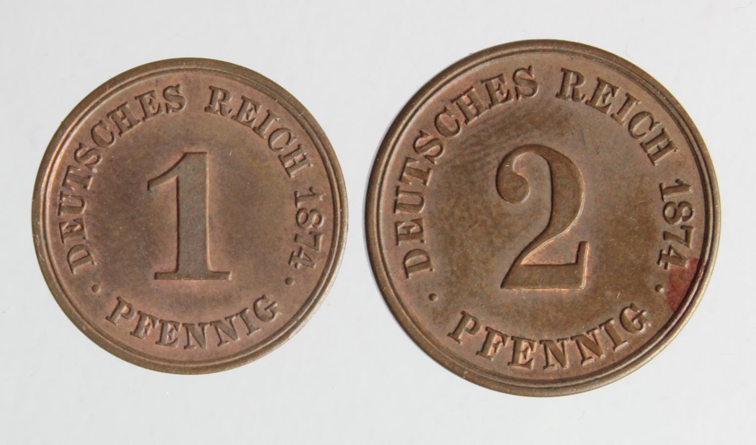 Germany (2) 1 Pfennig 1874C GEF with lustre, and 2 Pfennig 1874C EF trace lustre.
