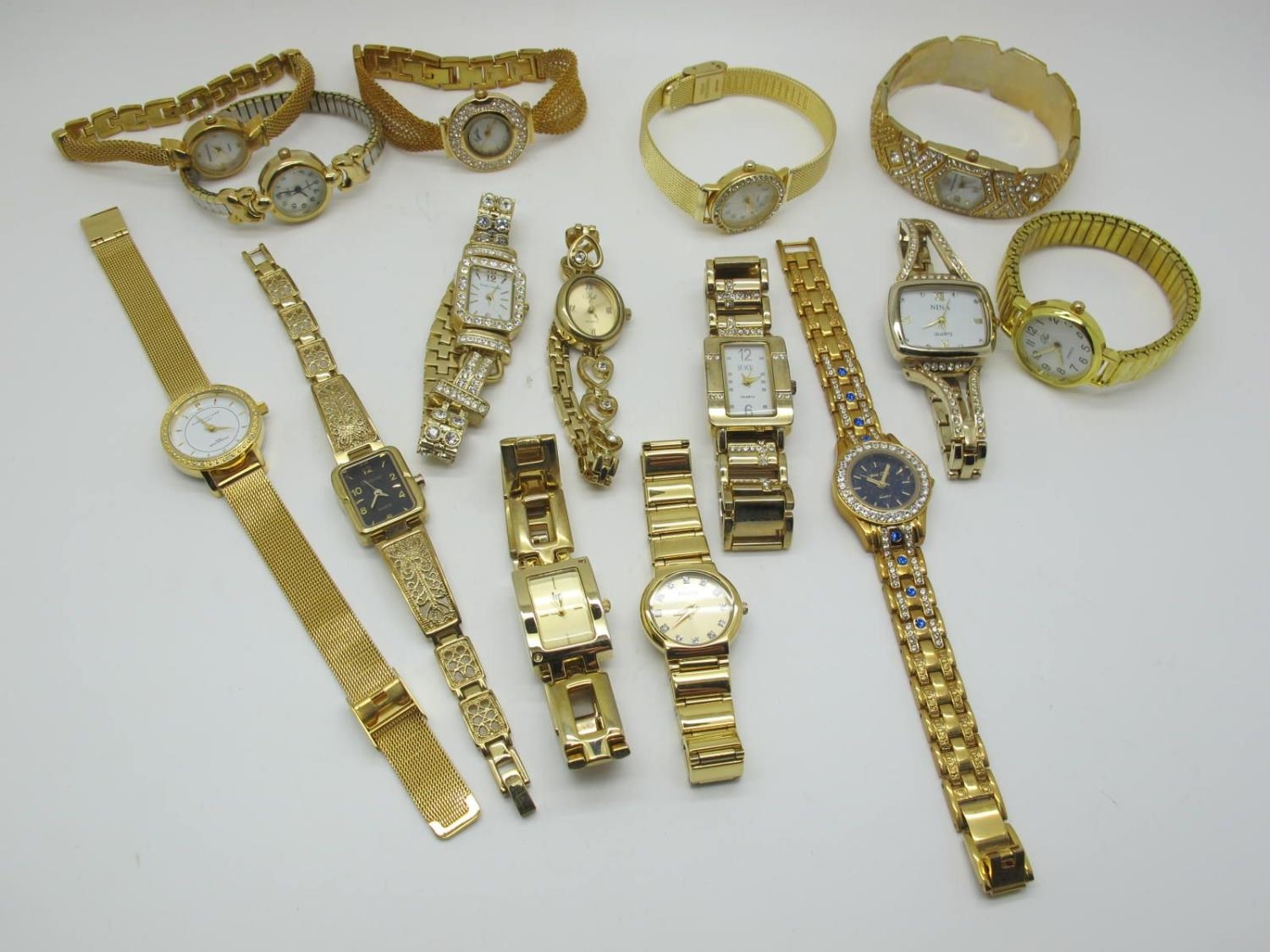 A Collection of Assorted Modern Gold Plated Ladies Wristwatches, including Pulsar, Nina, Jewel Time, Christin Lars, etc.