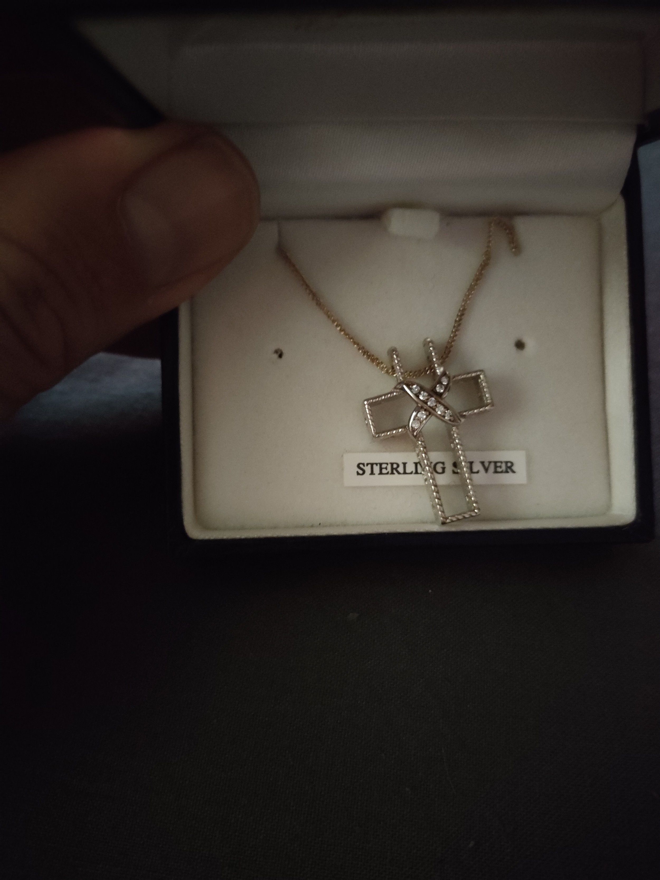 Silver necklace with cross pendant .