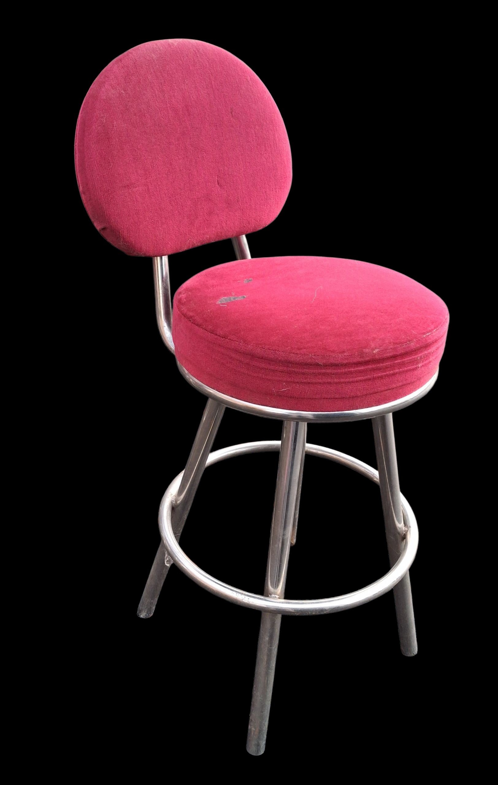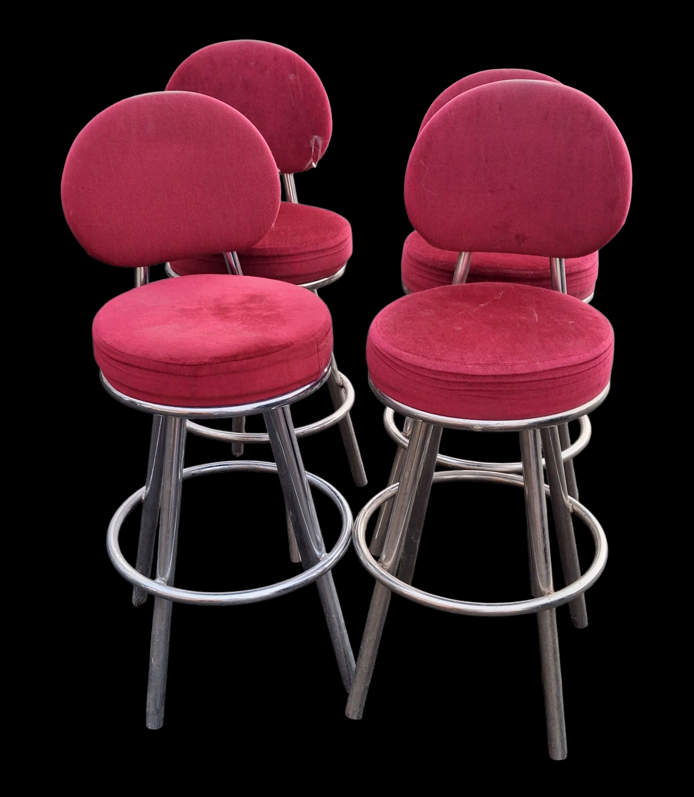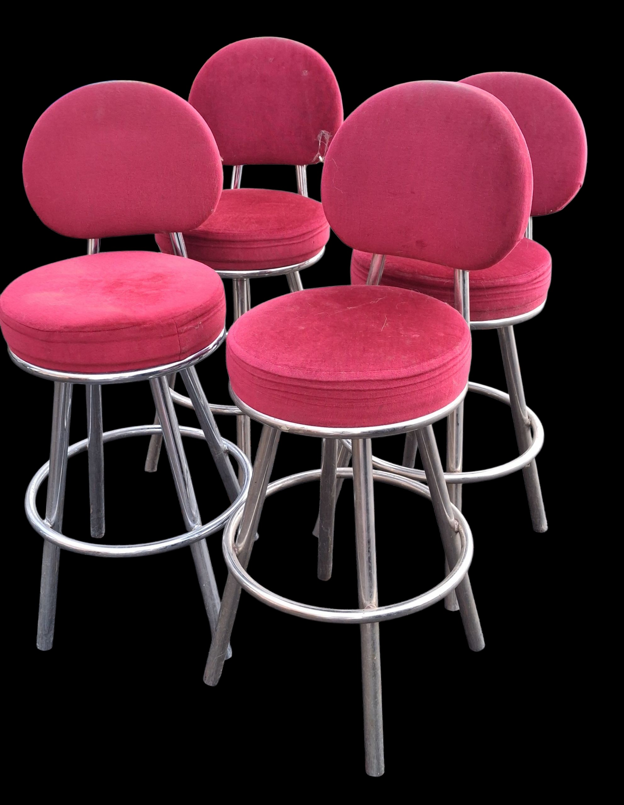 A SET OF 4 CHROMED FINISHED BAR HIGHCHAIRS