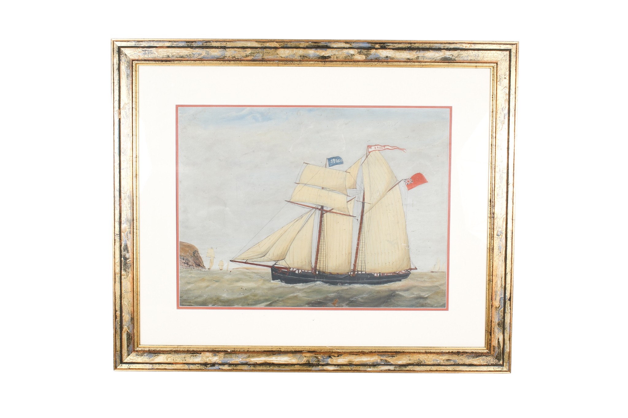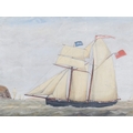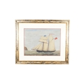 A 'naive' oil on paper of a ship under sail. Unsigned, in a modern frame. Image H44cm x W59cm, size with frame 75cm x 89cm.