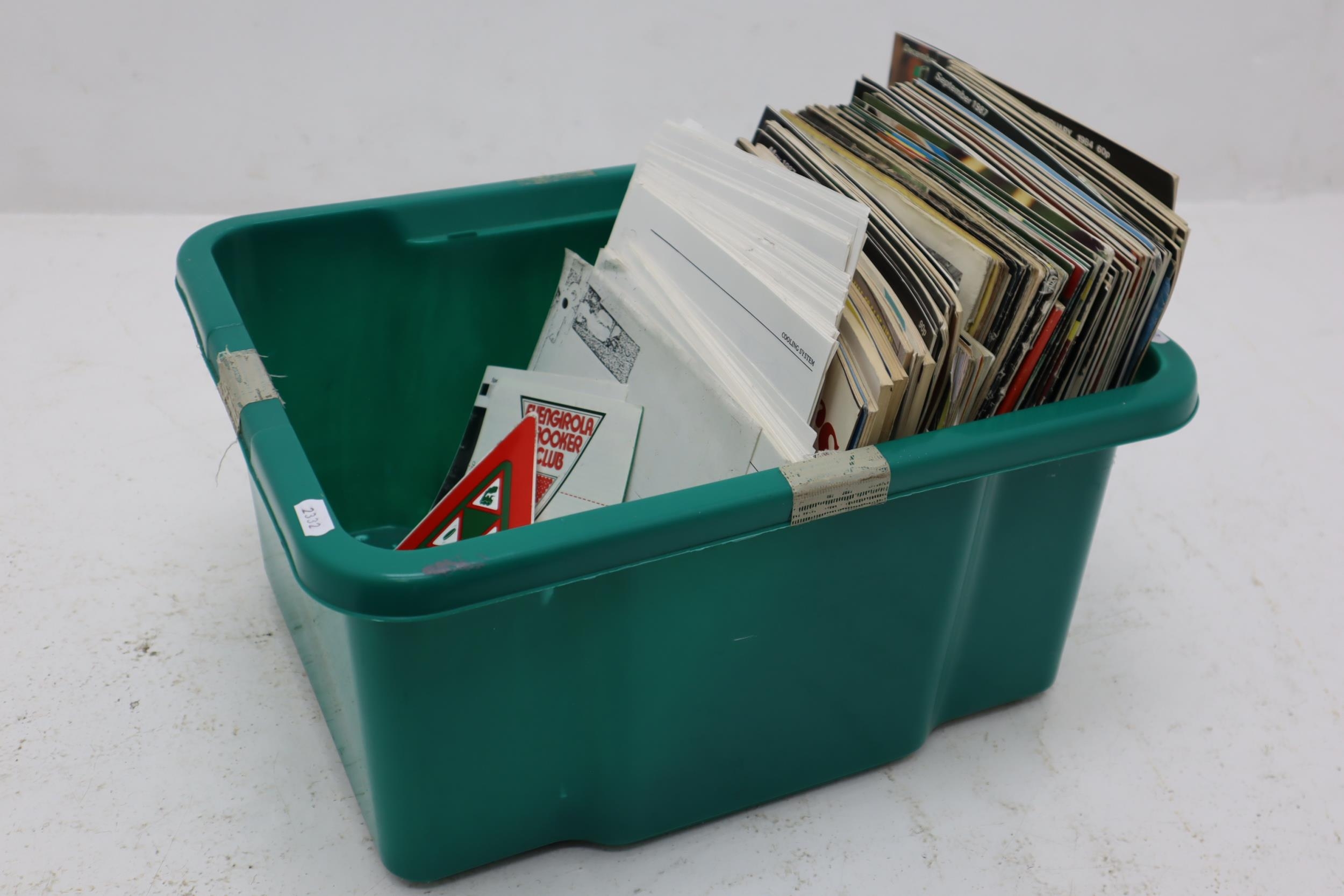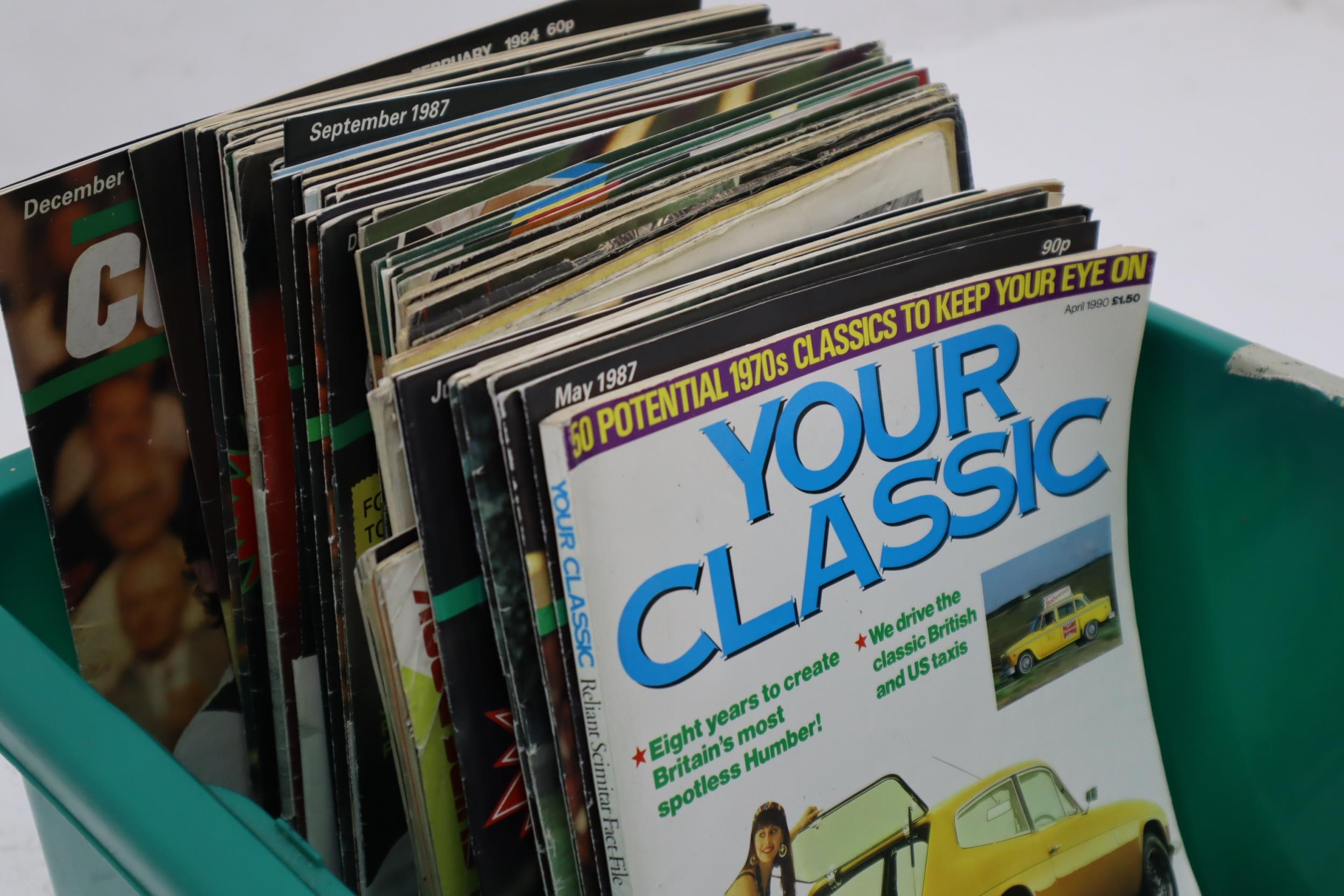 Tub Full of Vintage magazines to include "Cue World" Classic Vehicle Magazines and a Print out of a Triumph Dolomite Sprint Service and repair Manual