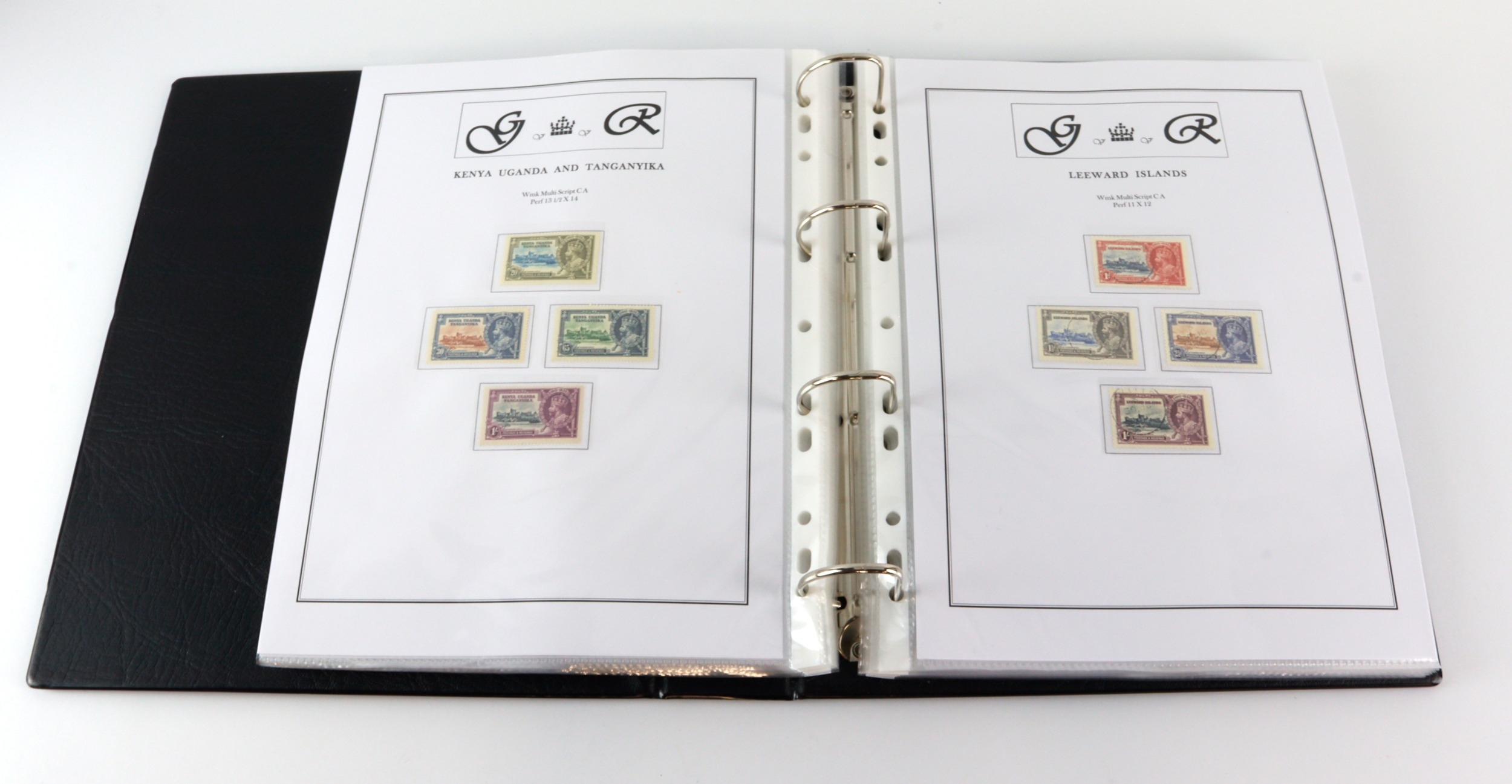British Commonwealth 1935 Silver Jubilee omnibus issue. Nearly complete with 61 sets (minus 1 stamp) mm, missing are: GB, Egypt British forces and South Africa, cat £1725, housed in blue binder