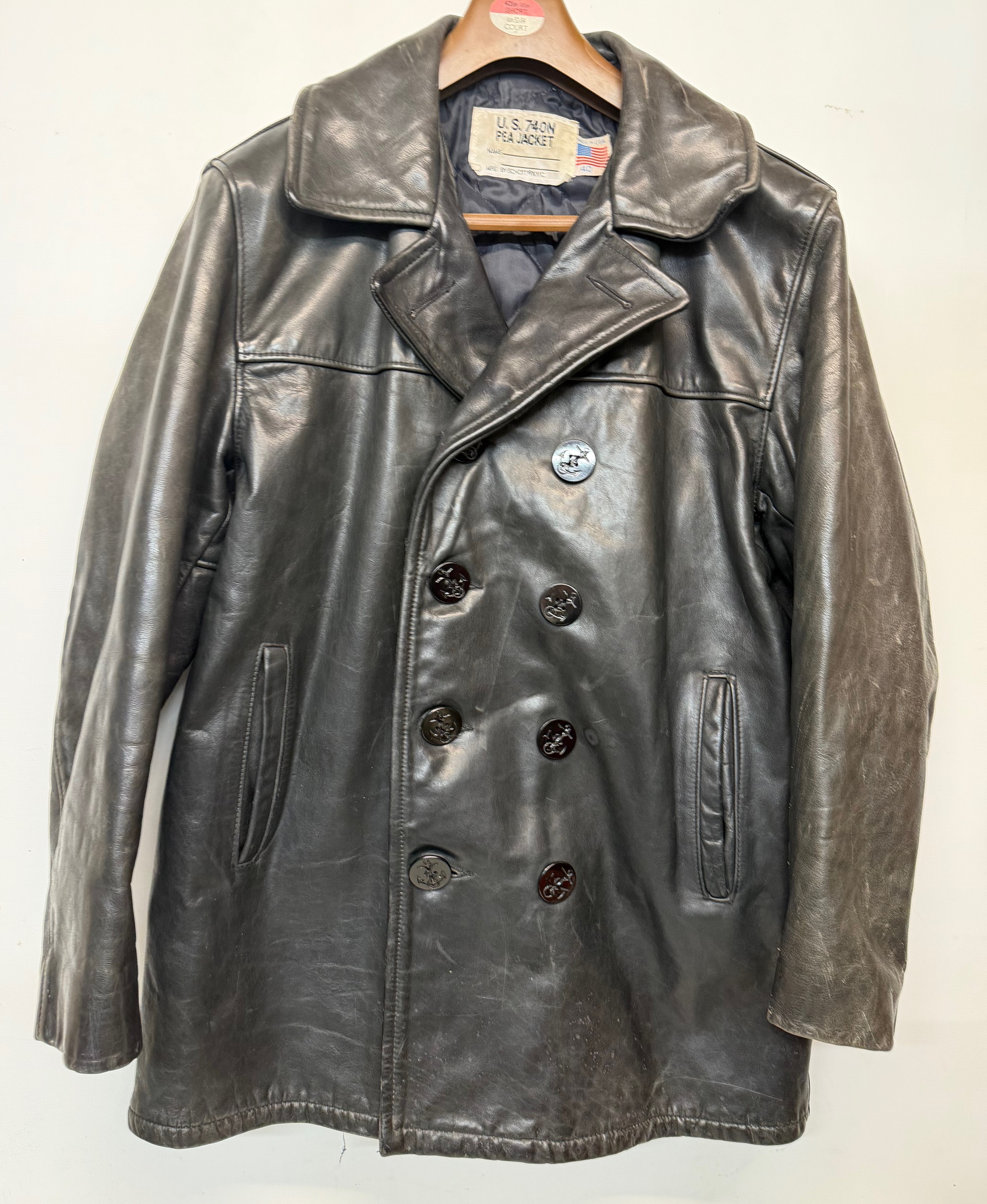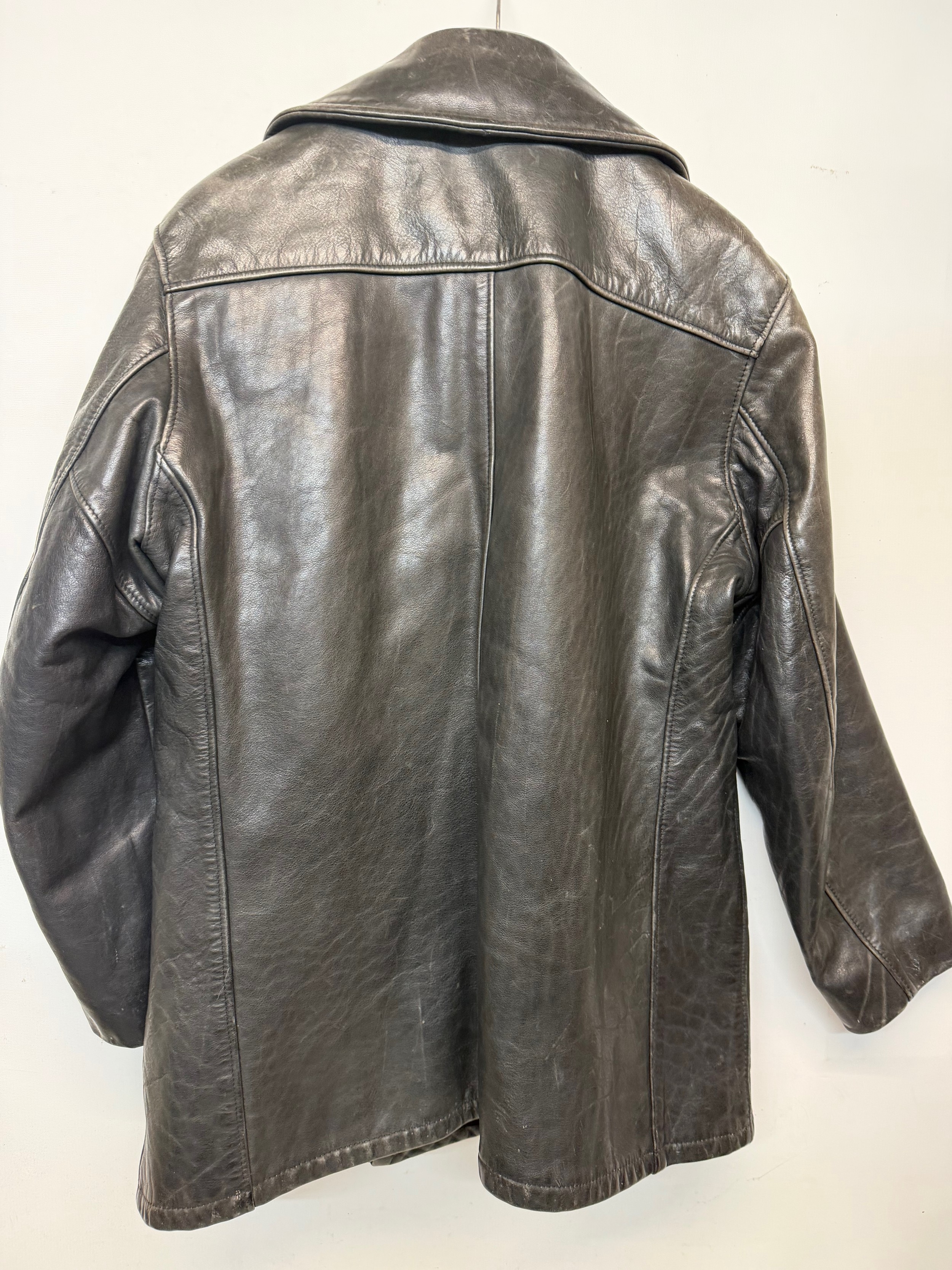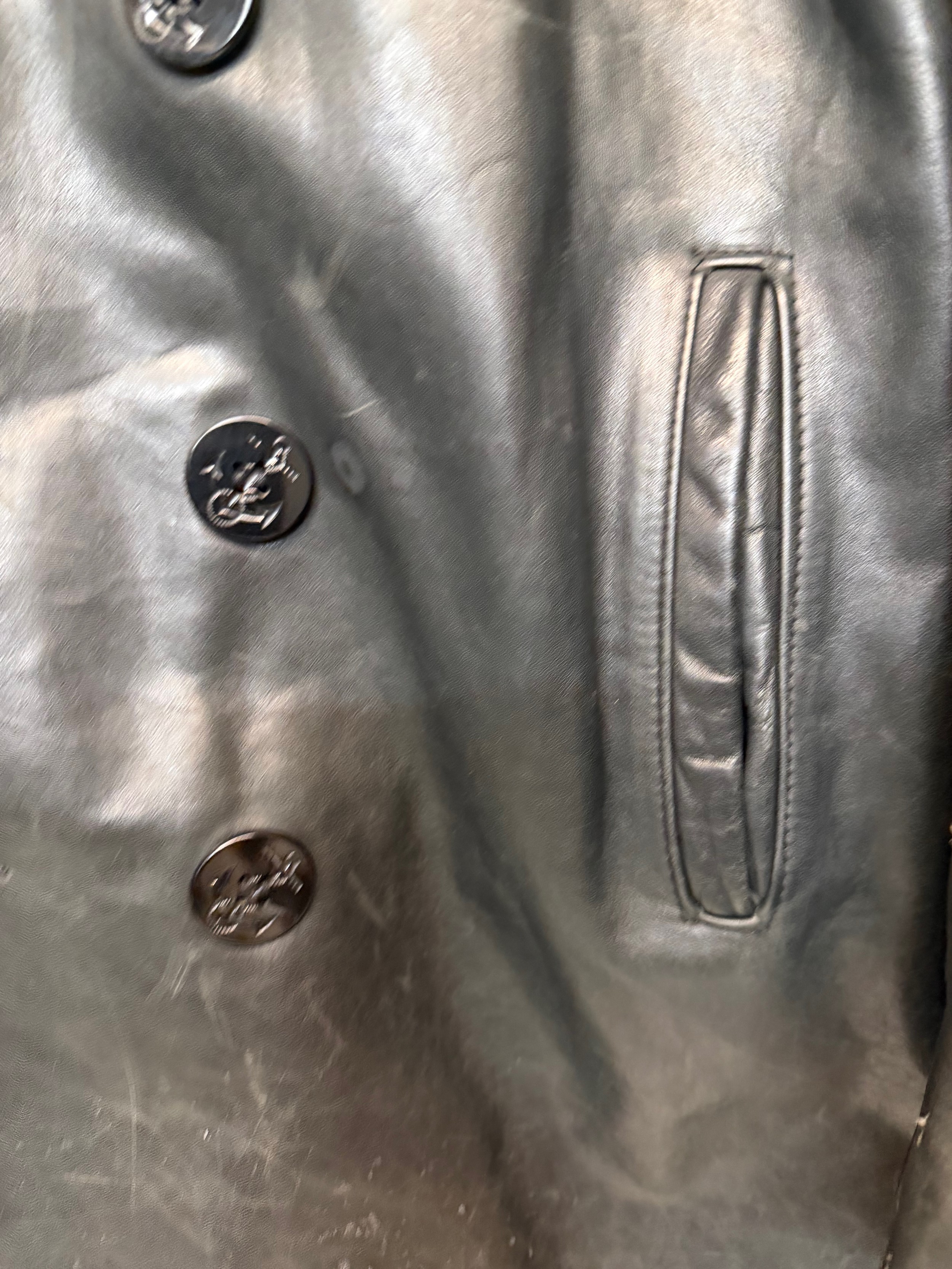 Vintage clothing, Military uniforms, a unusual leather version of a US Navy Peacoat by Schott of New York.