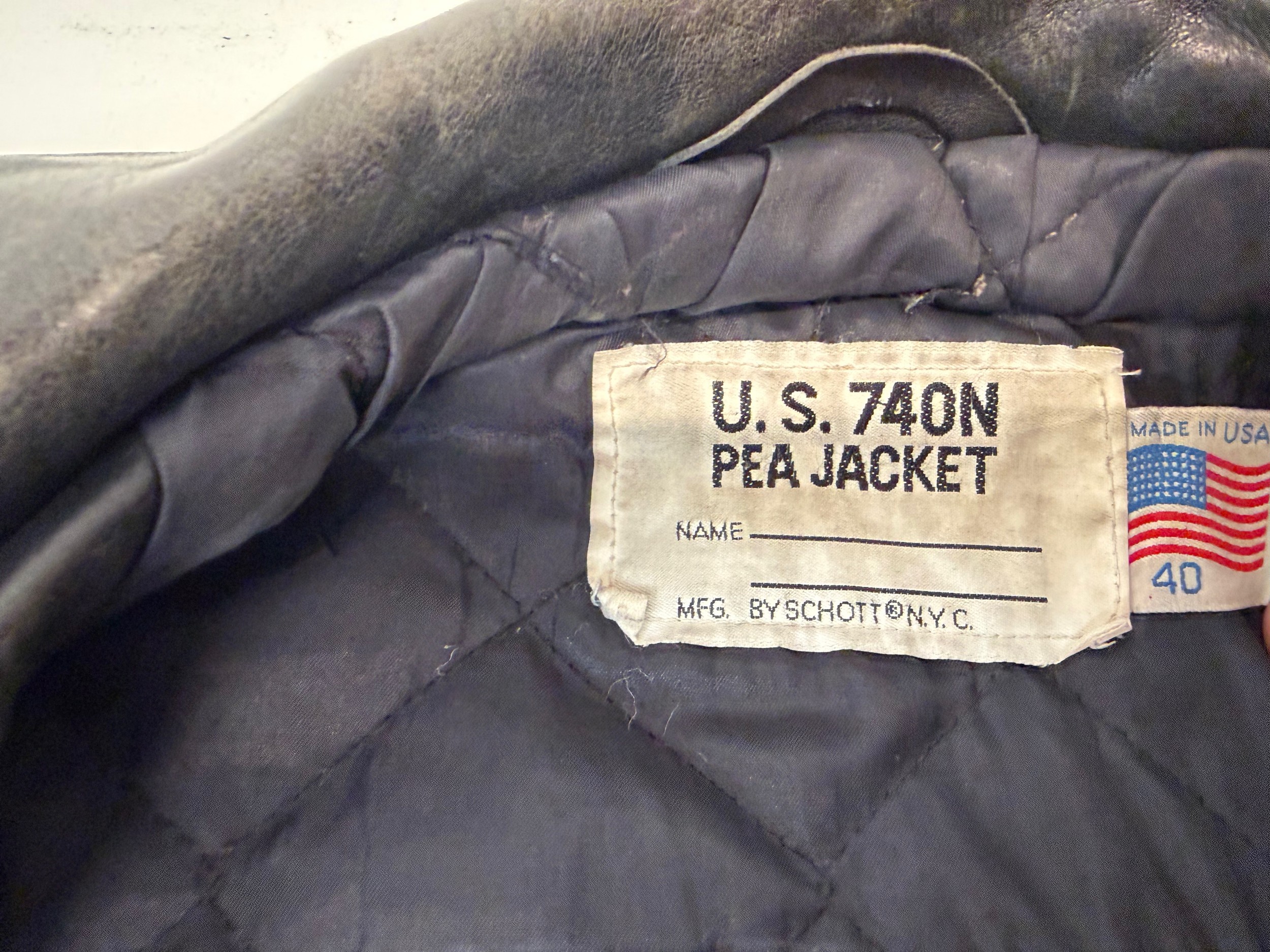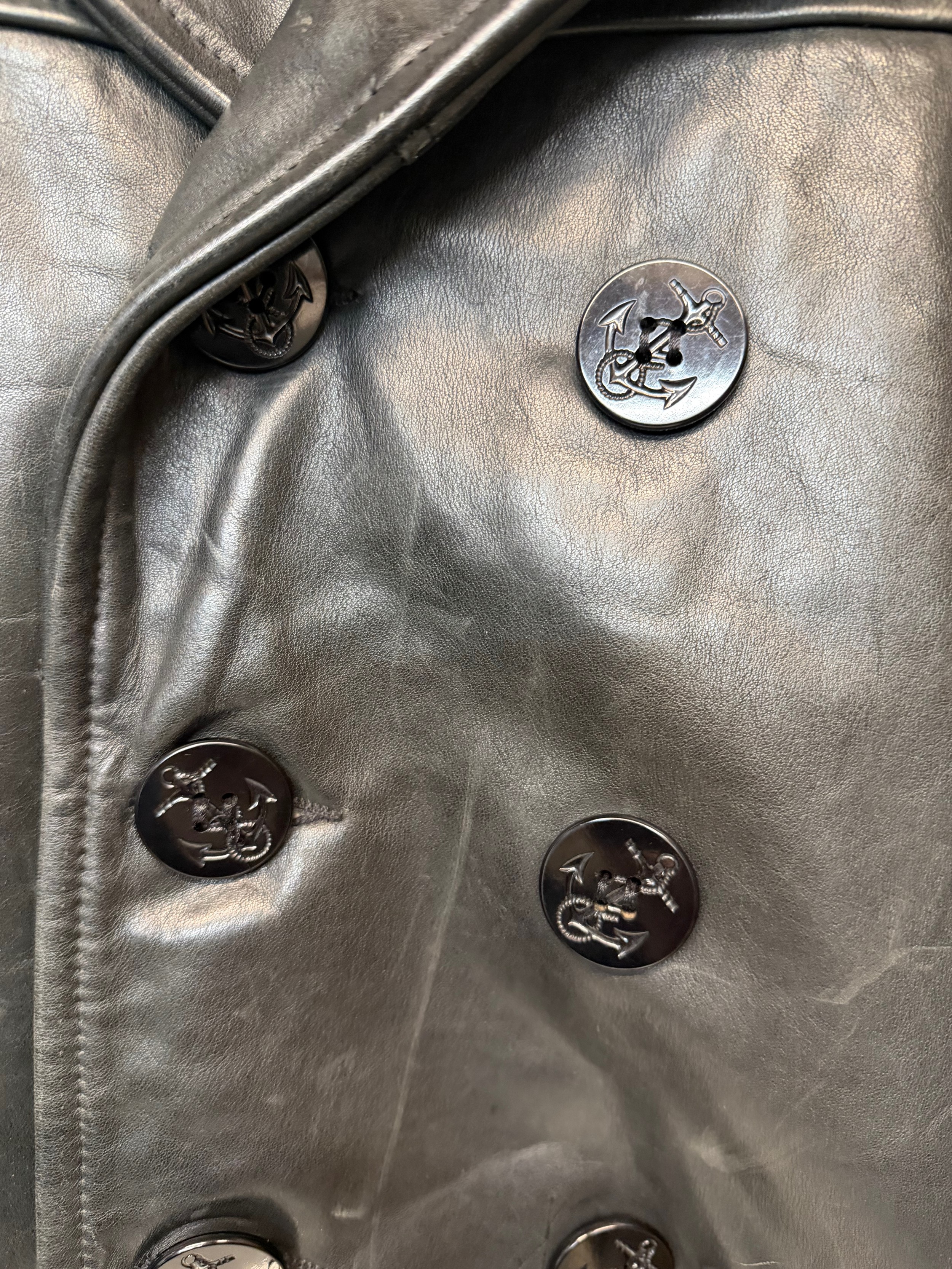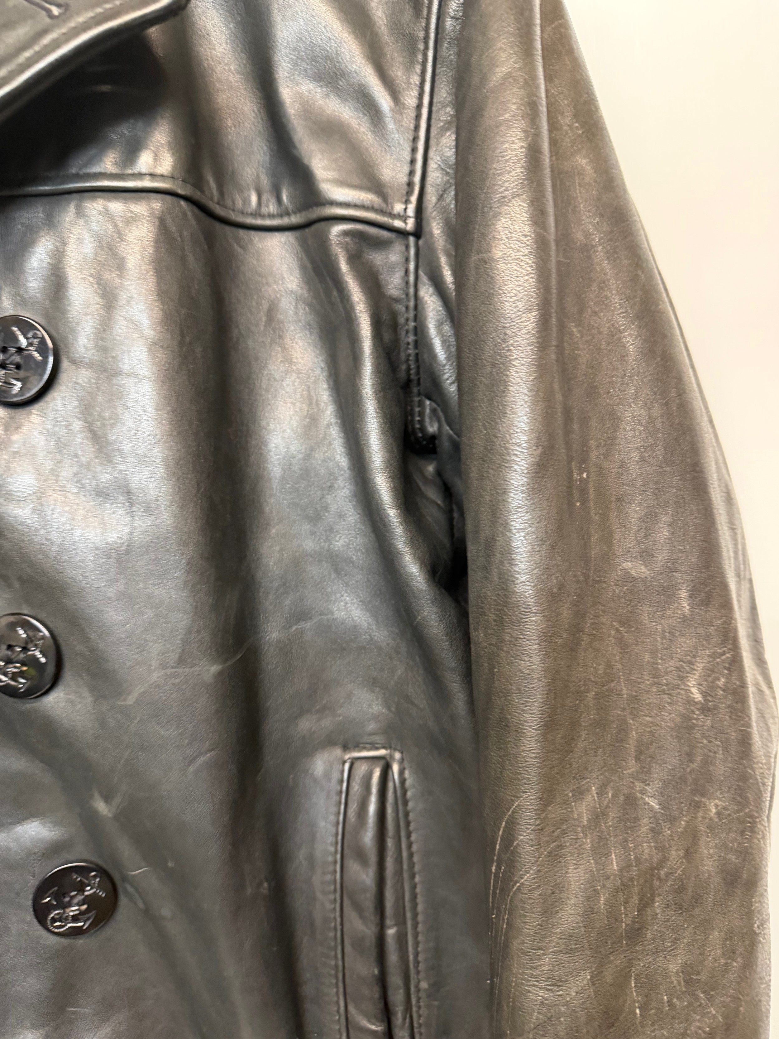 Vintage clothing, Military uniforms, a unusual leather version of a US Navy Peacoat by Schott of New York.