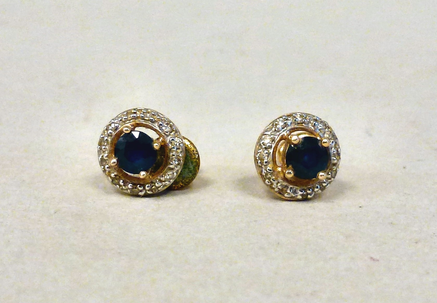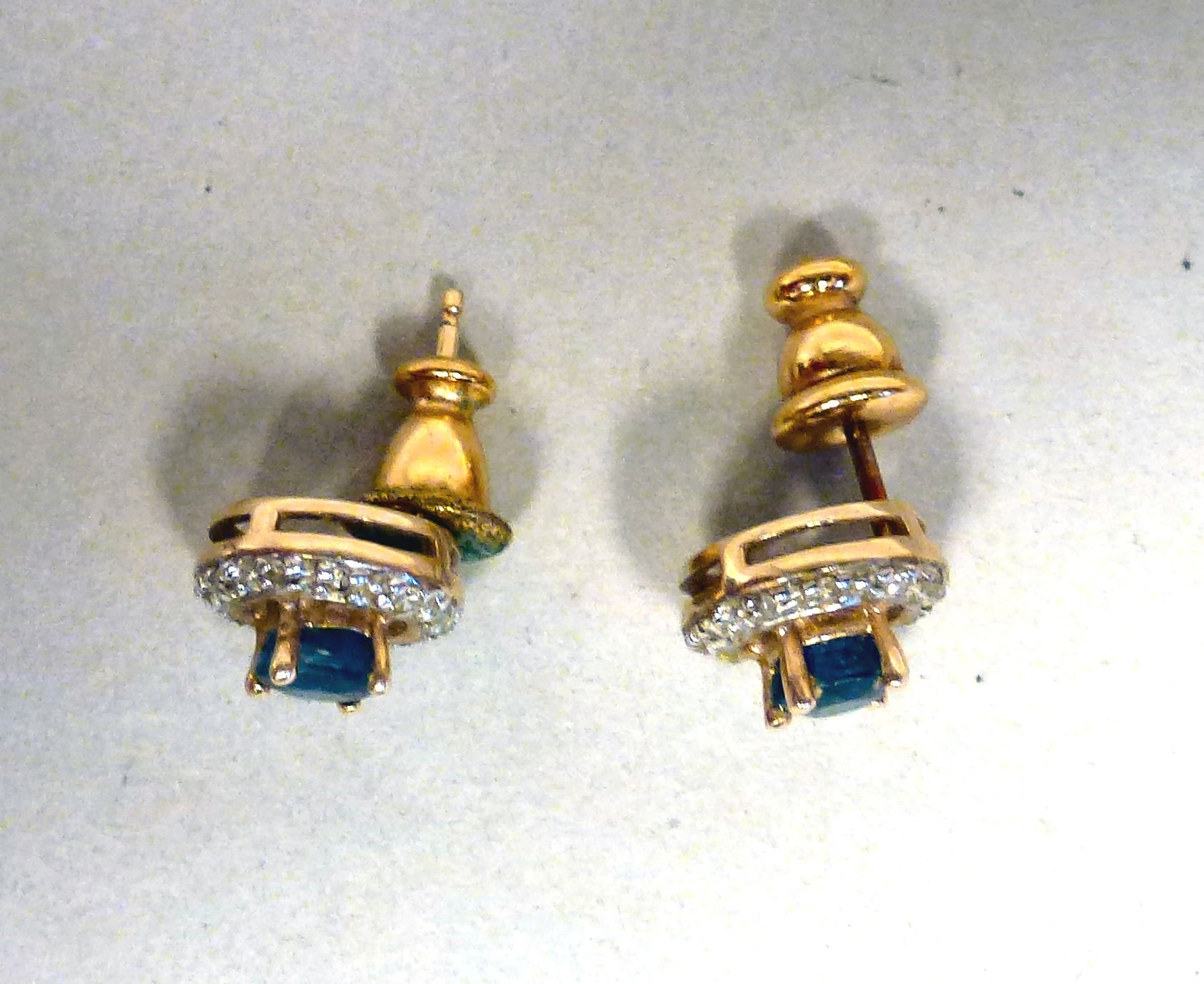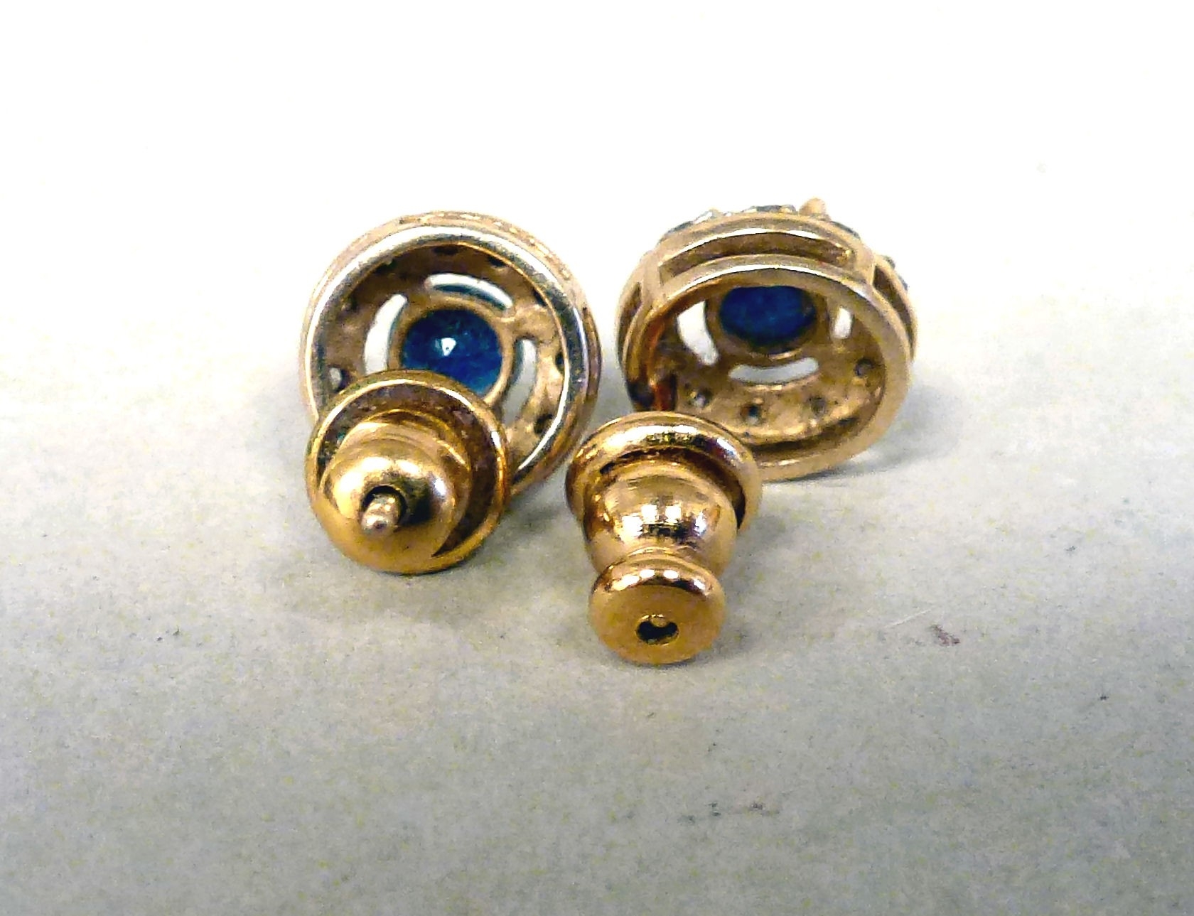 A pair of 10ct gold sapphire earrings with gold plated studs (approx. combined gross weight 2grms)