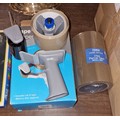 Boxed and unused tape dispenser and pack of 3 x rolls of parcel tape