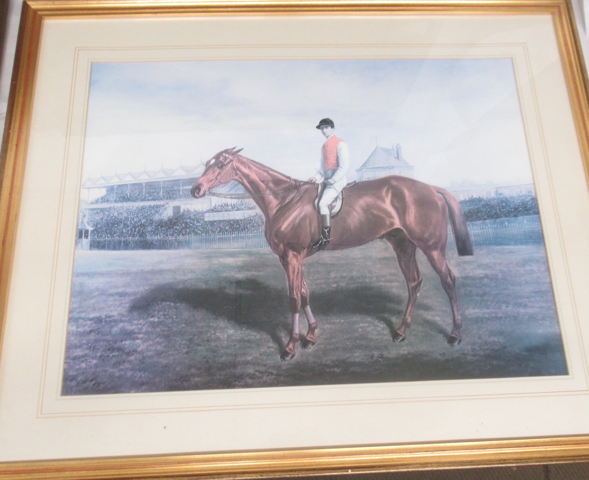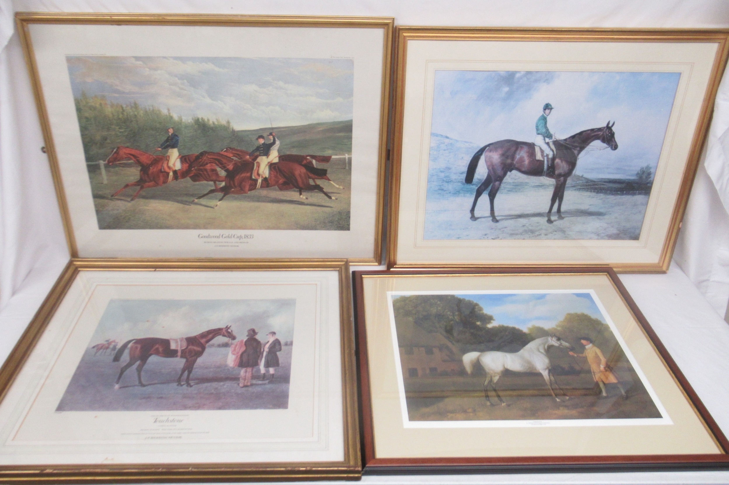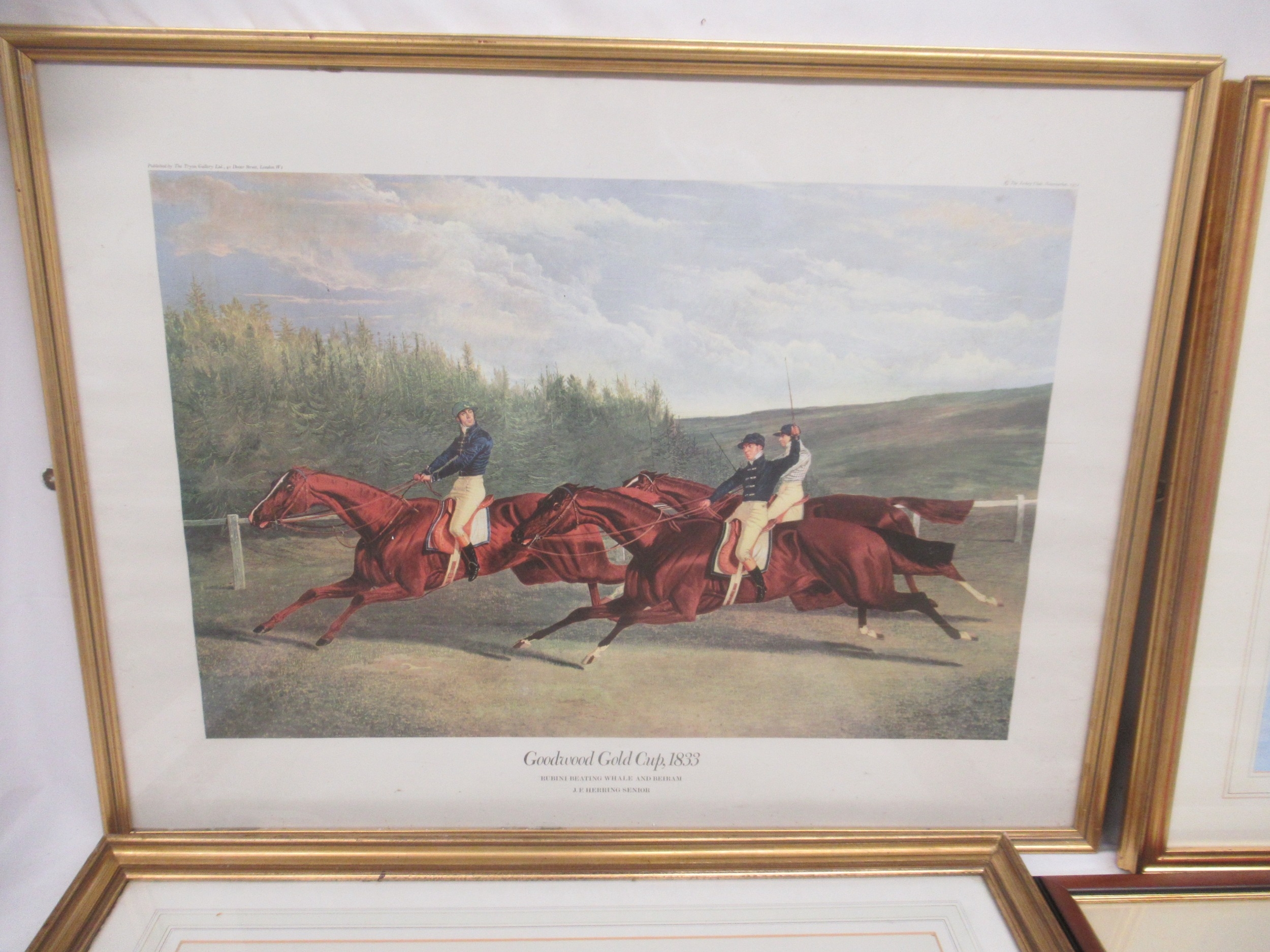 Collection of prints to inc. c19th print of the Flying Dutchman, c19th Print of Blue Gown Winner of the Derby Stakes at Epsom and the Gold Cup at Ascot 1868, 'Macs Gamble' The York Cup, 1983 multi-photograph framed montage, c20th print of a 1883 painting of horse and rider at Newmarket, Print of Gimcrack by Stubbs, c20th print of a panting of horse and jockey by H. Hall, print of Goodwood Cup 1833 Rubini beating Whale and Beiram by J. F. Herring Senior & print of Touchstone by J. F. Herring Senior (8)