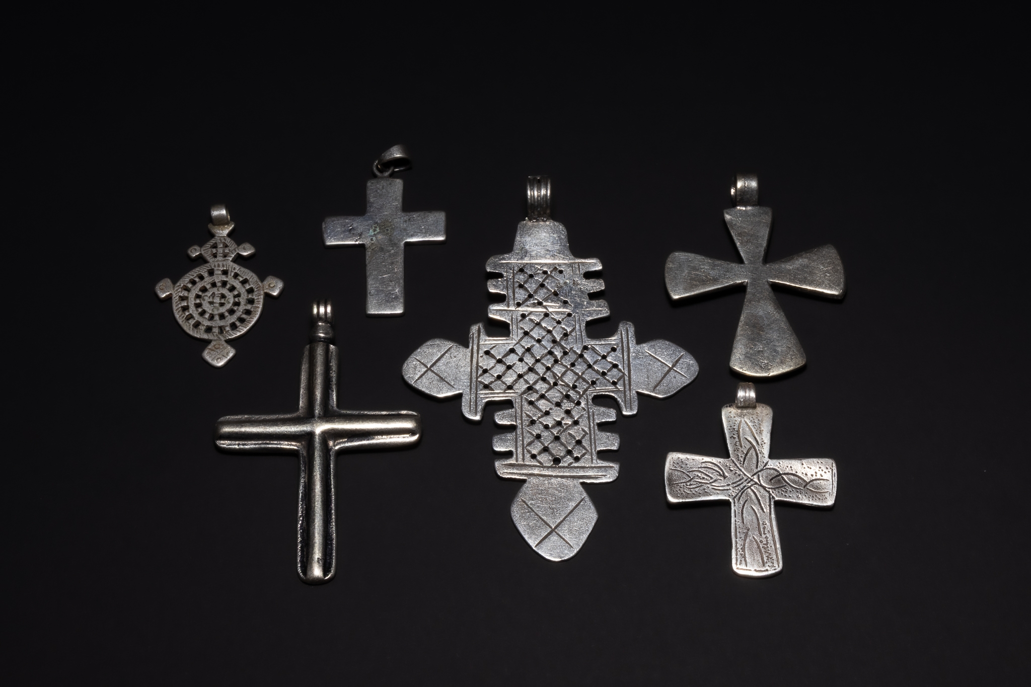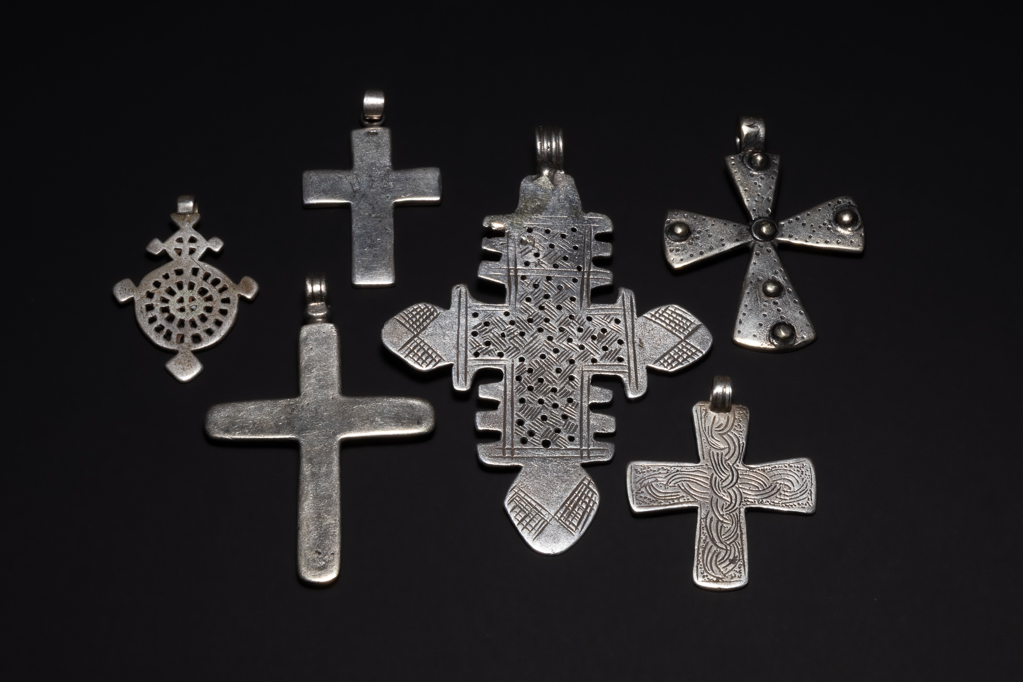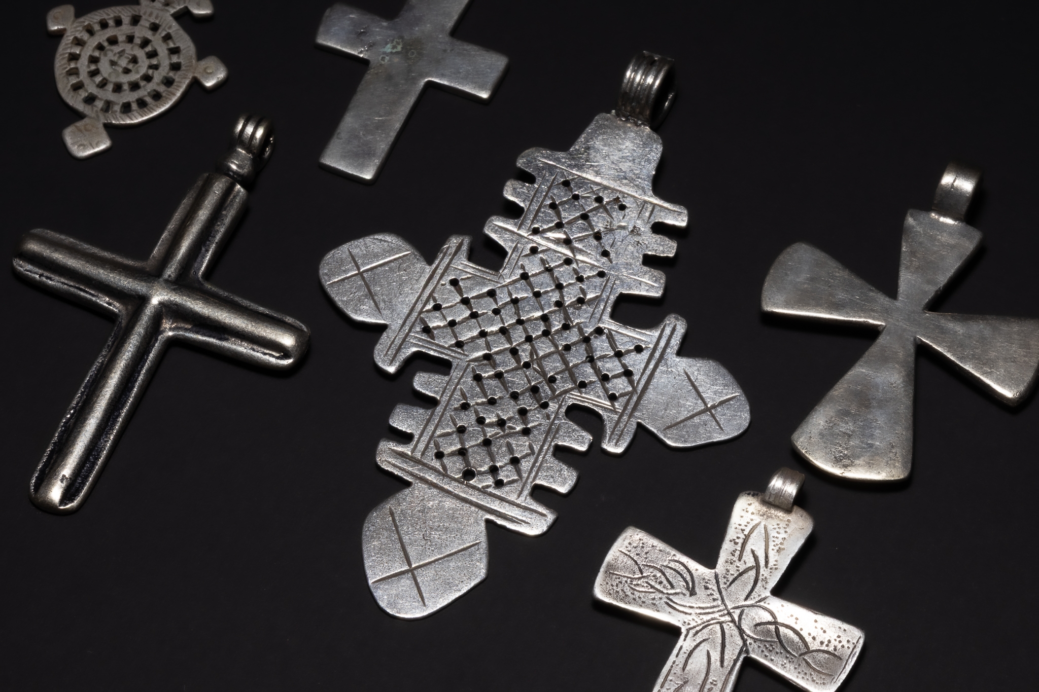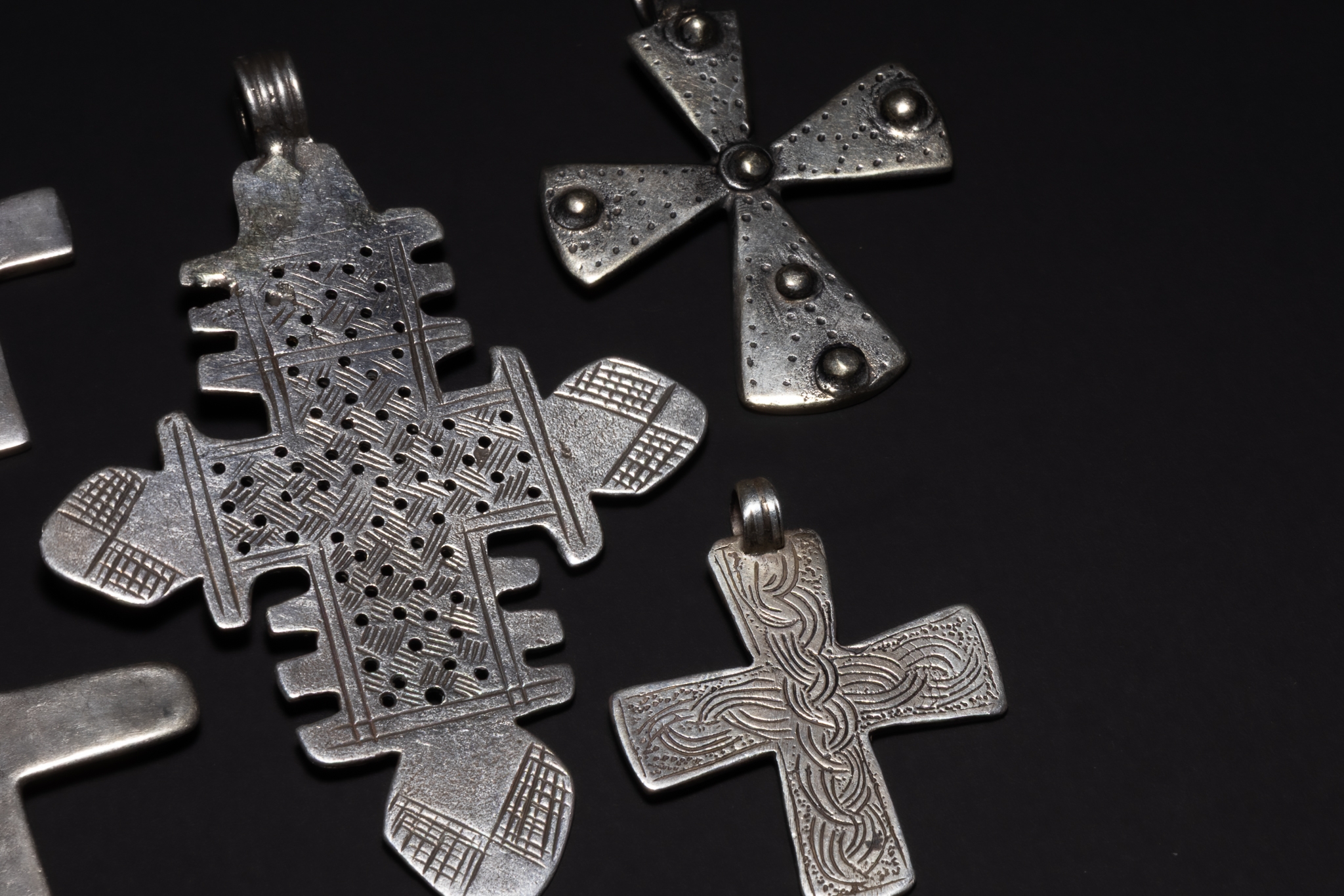 A Collection of Ethiopian Coptic Silver Cross Pendants.