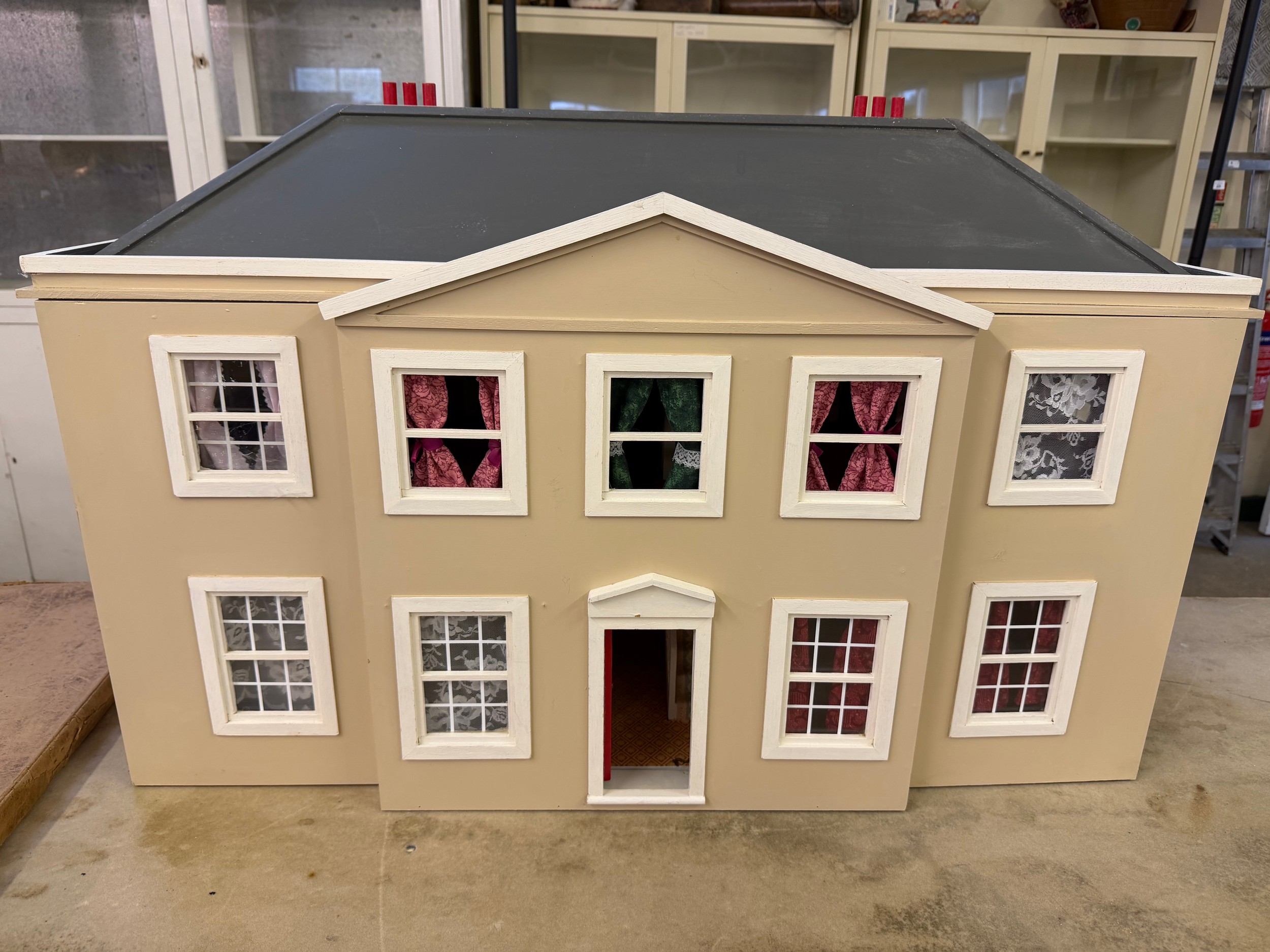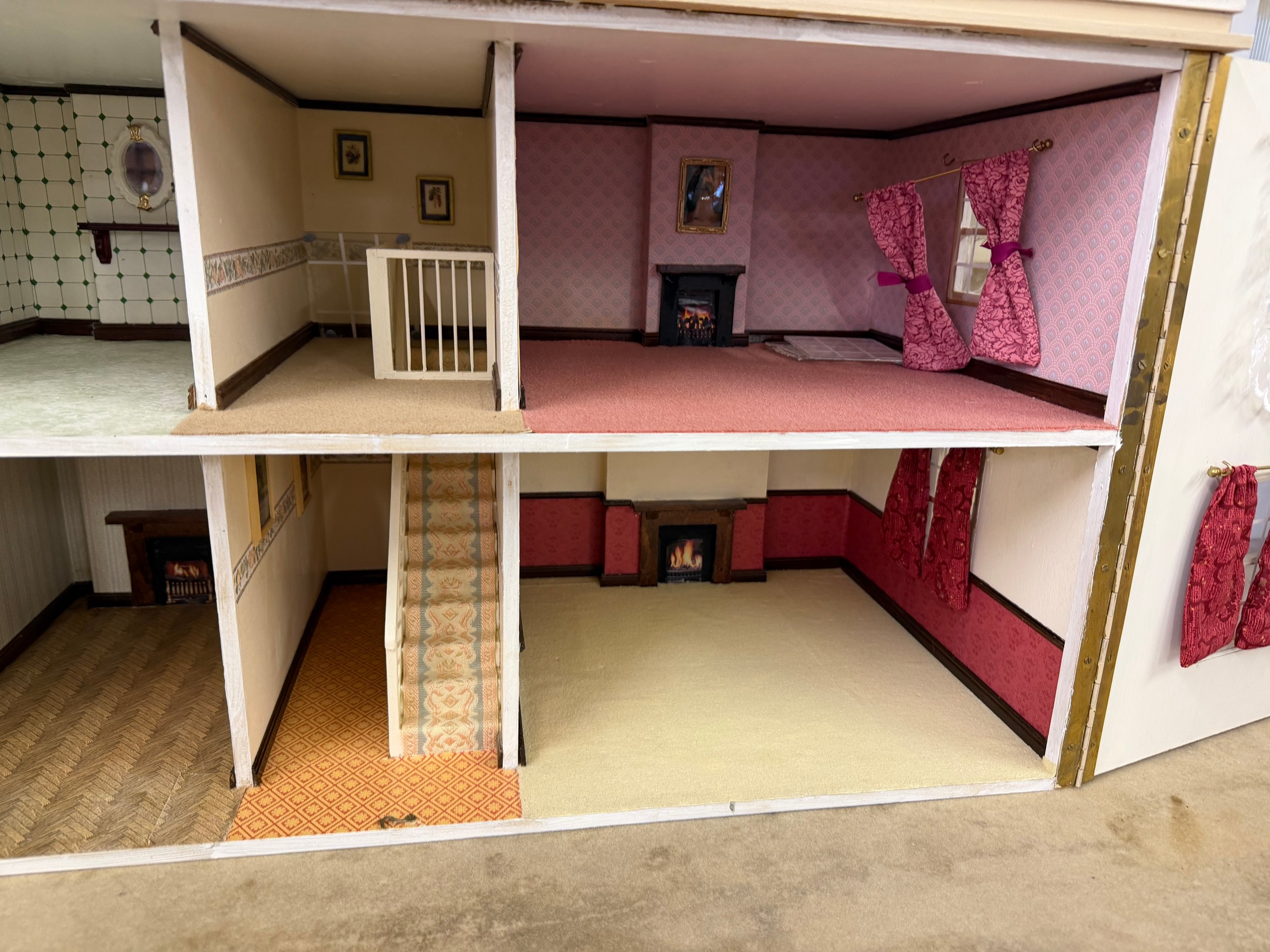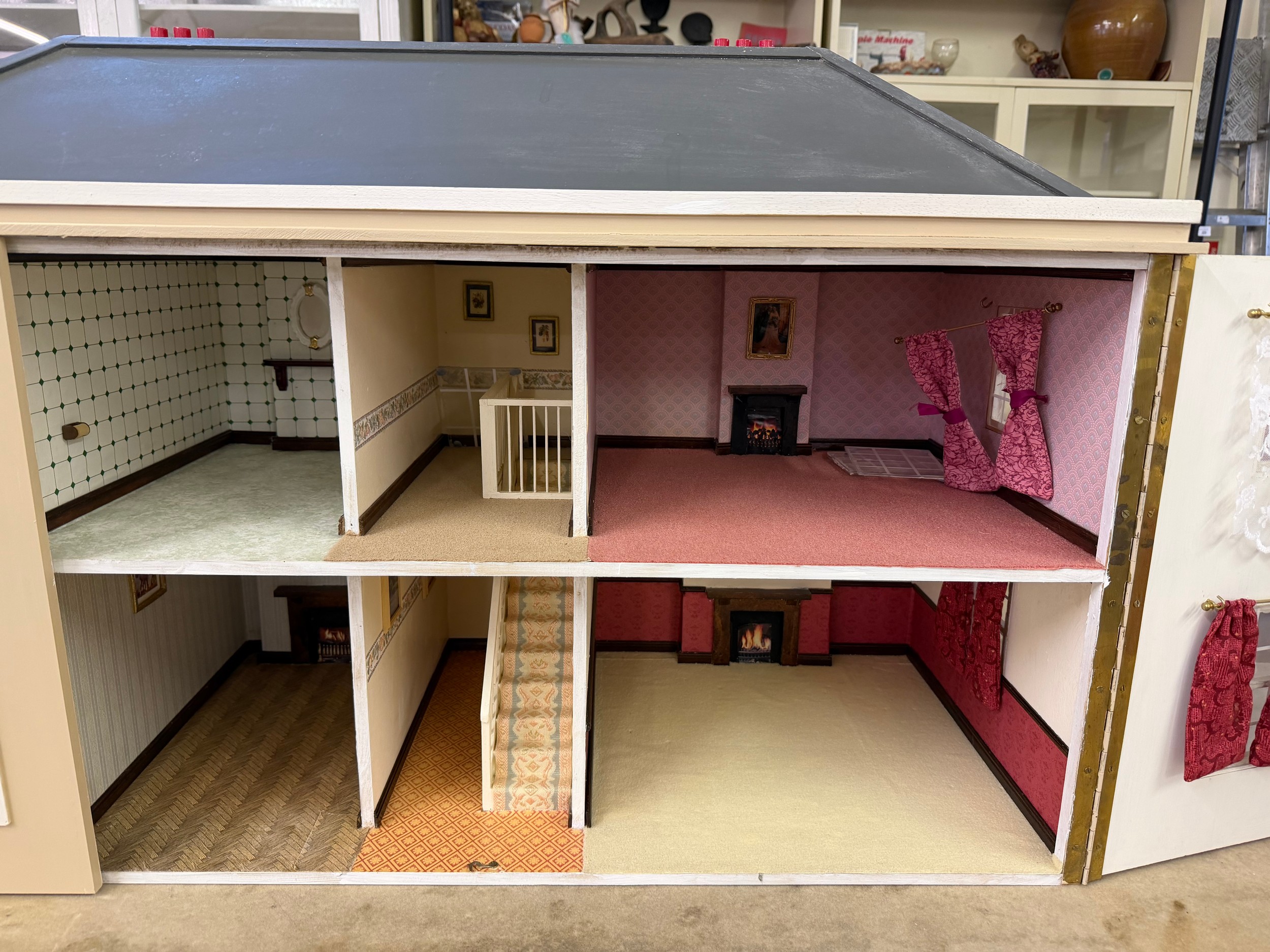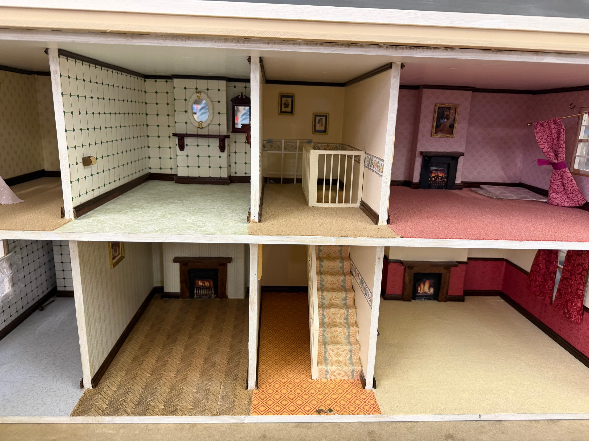 A hand made dolls house, with 2 section opening front.