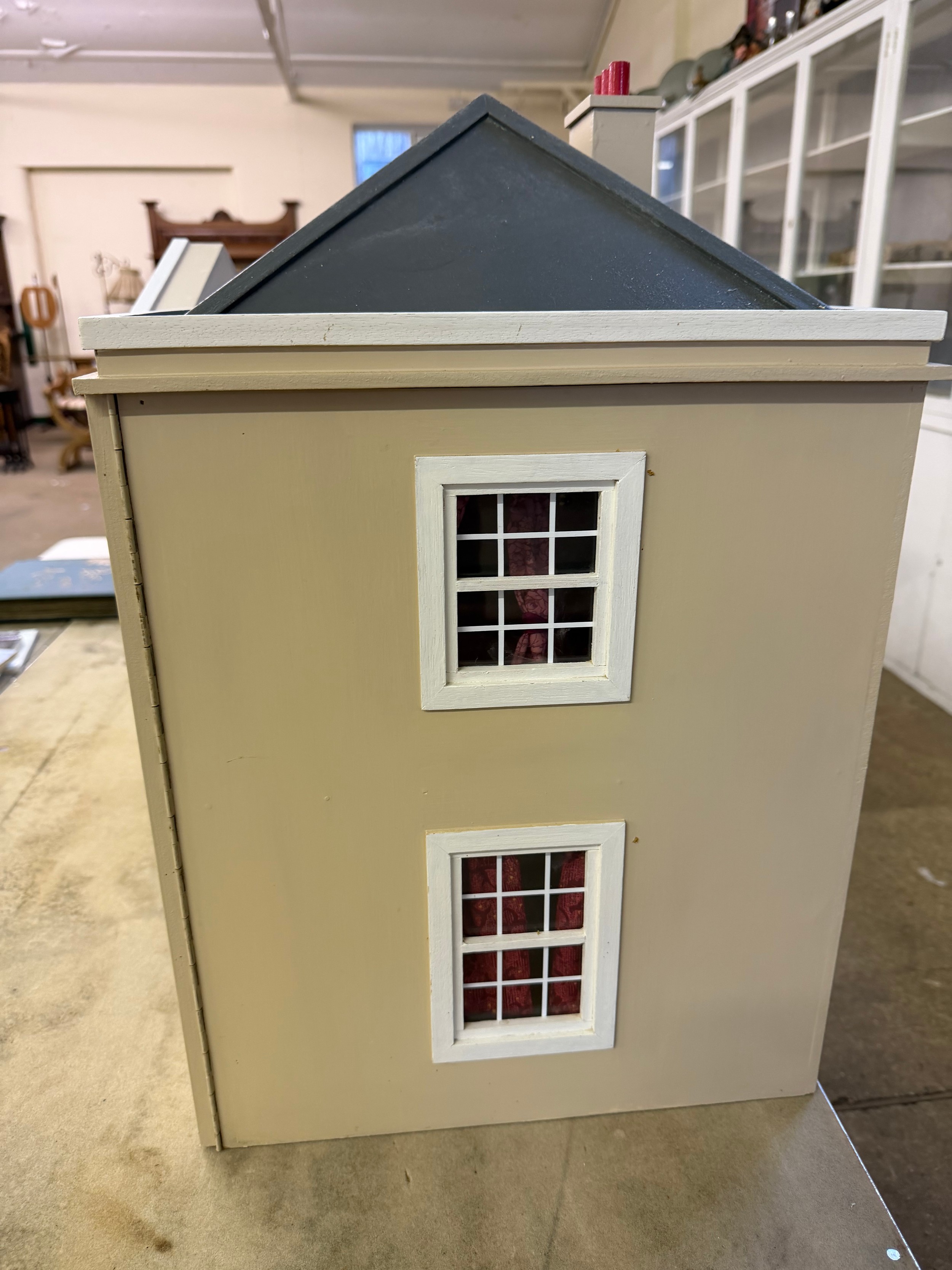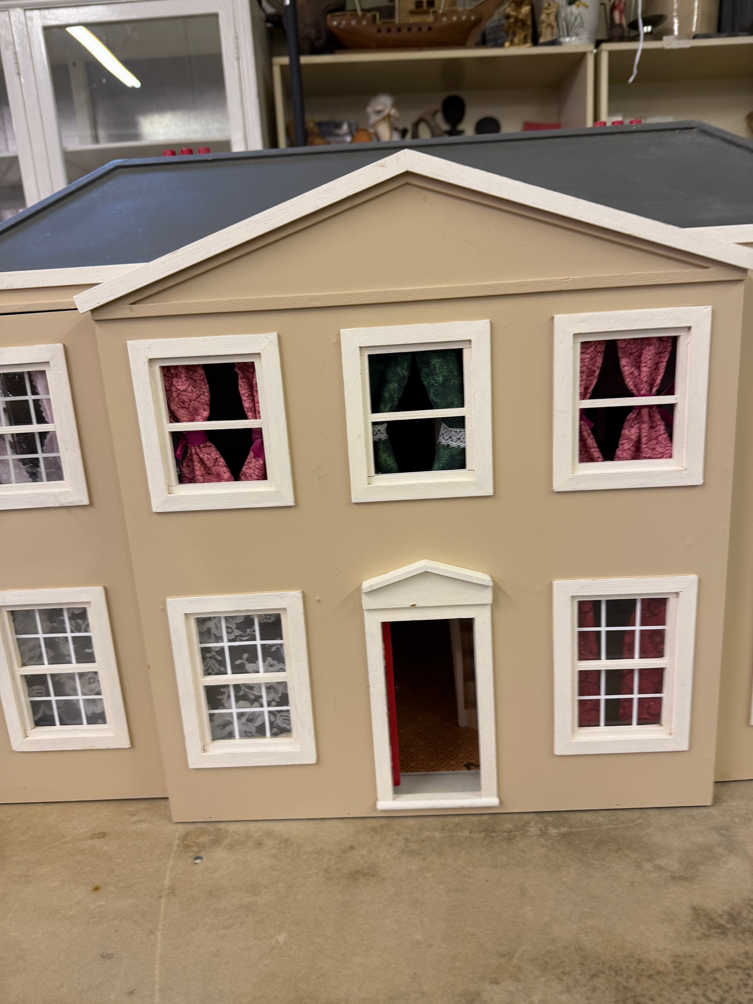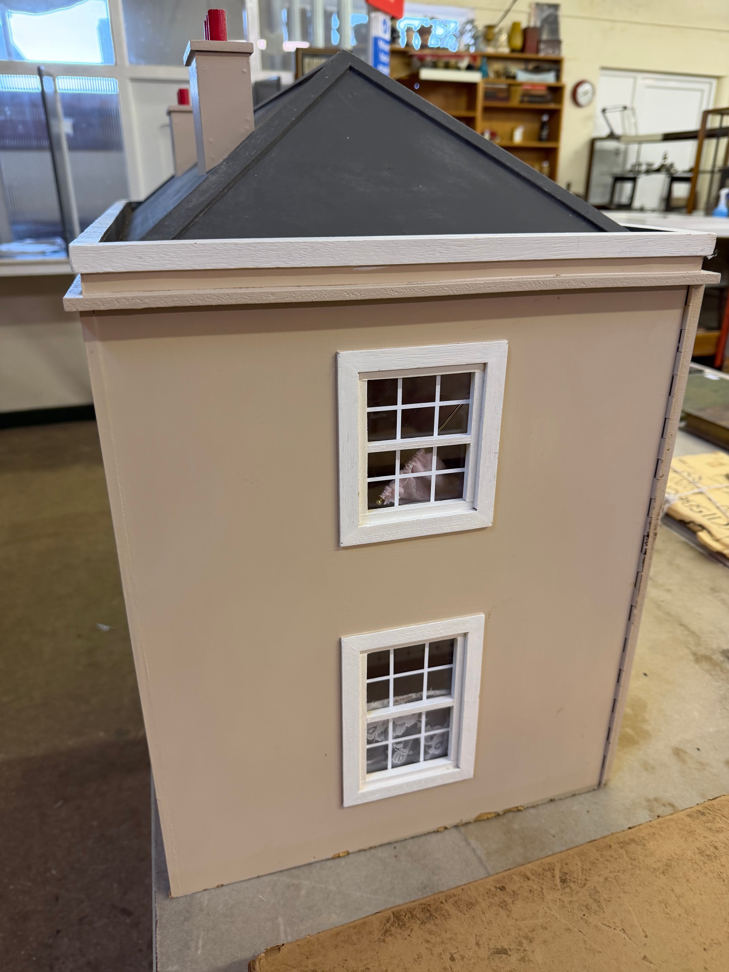 A hand made dolls house, with 2 section opening front.