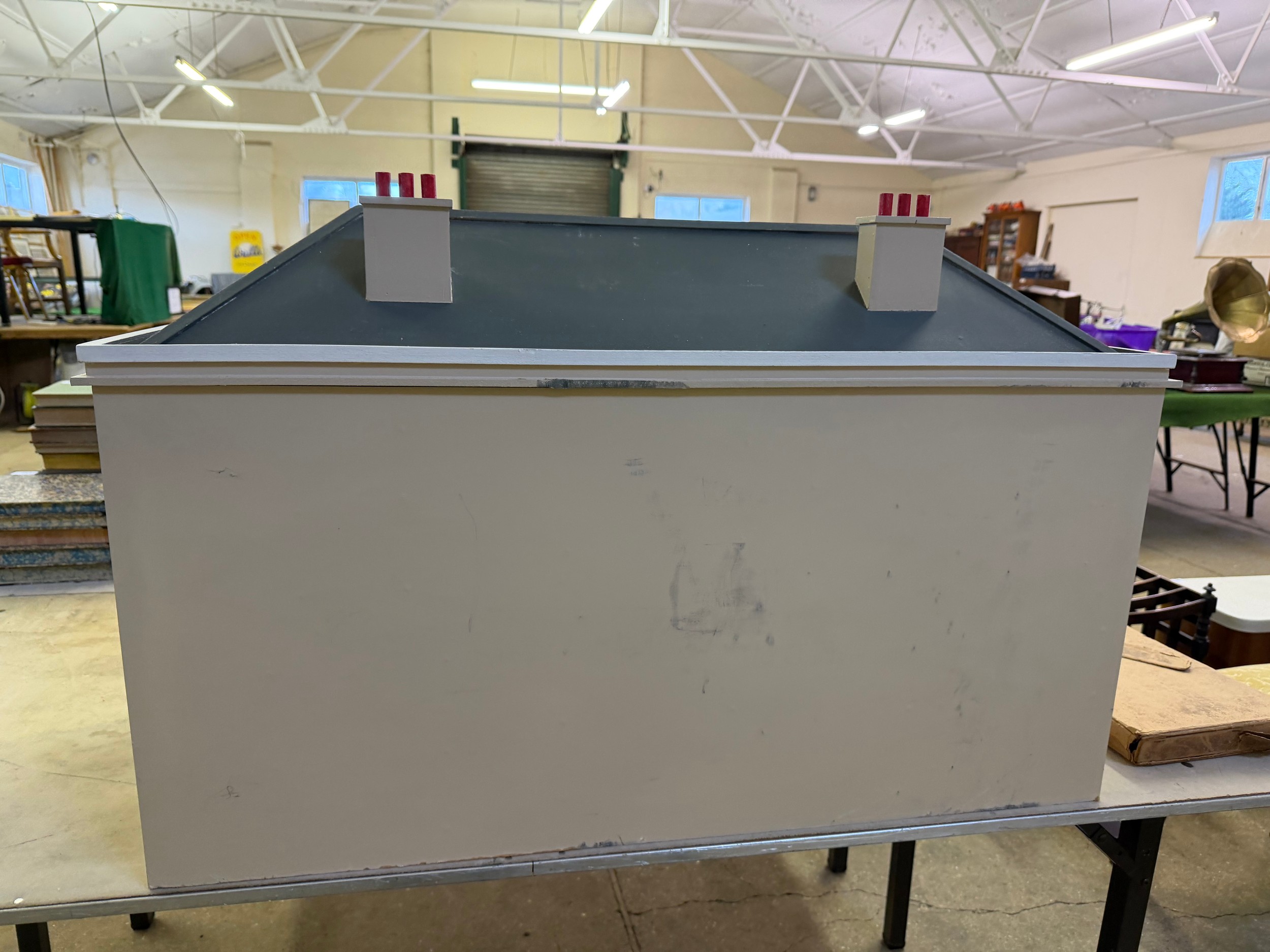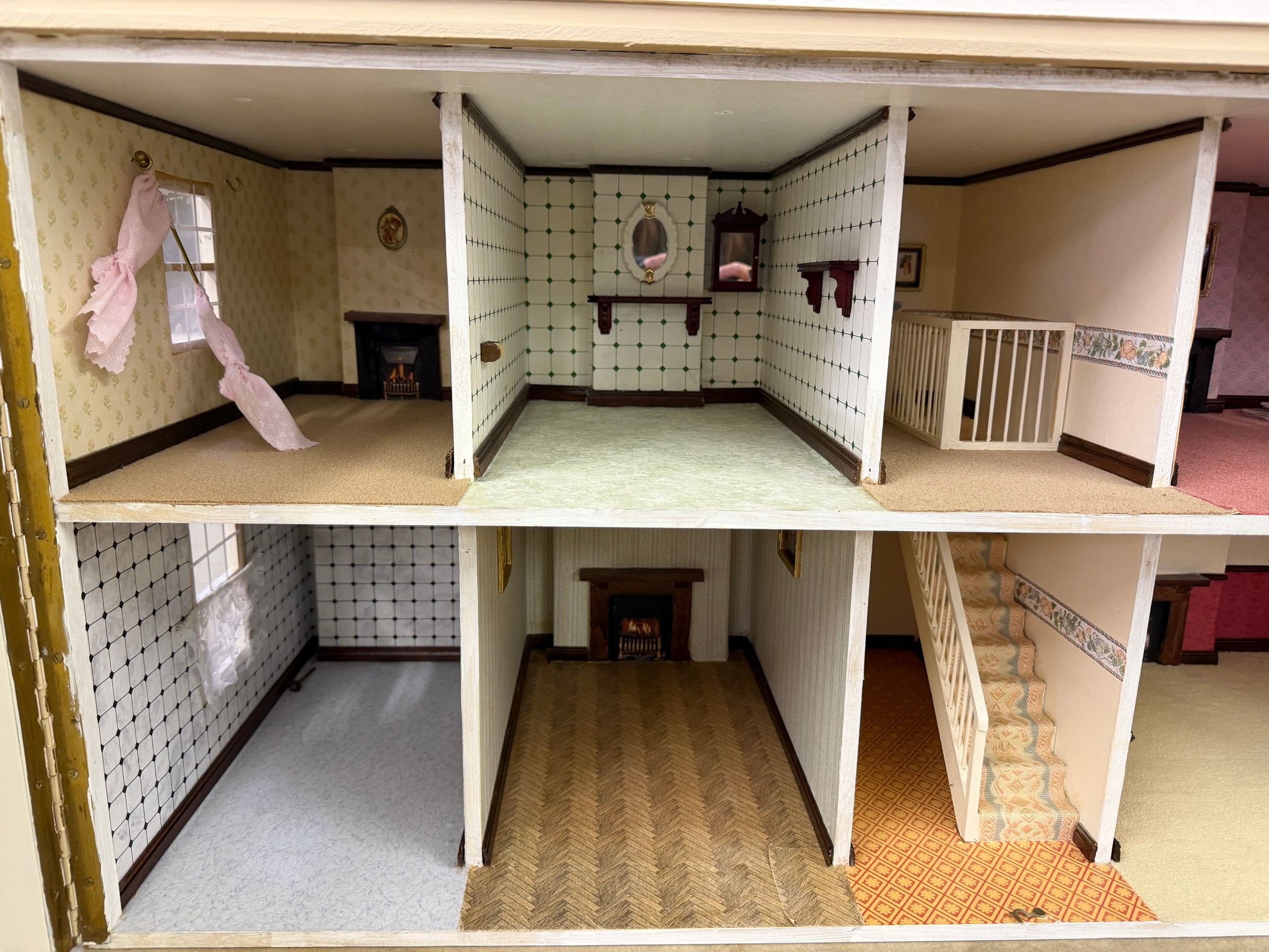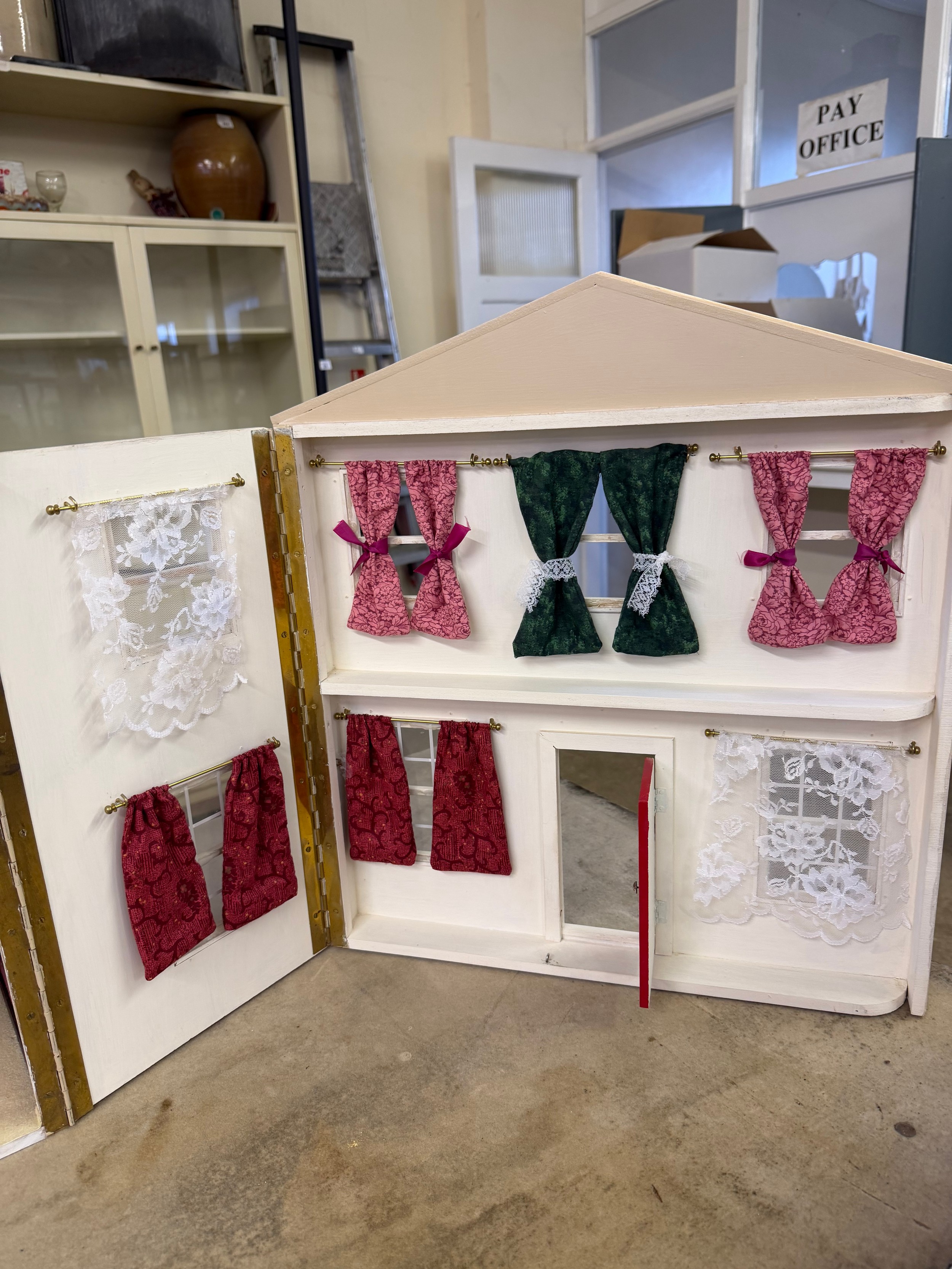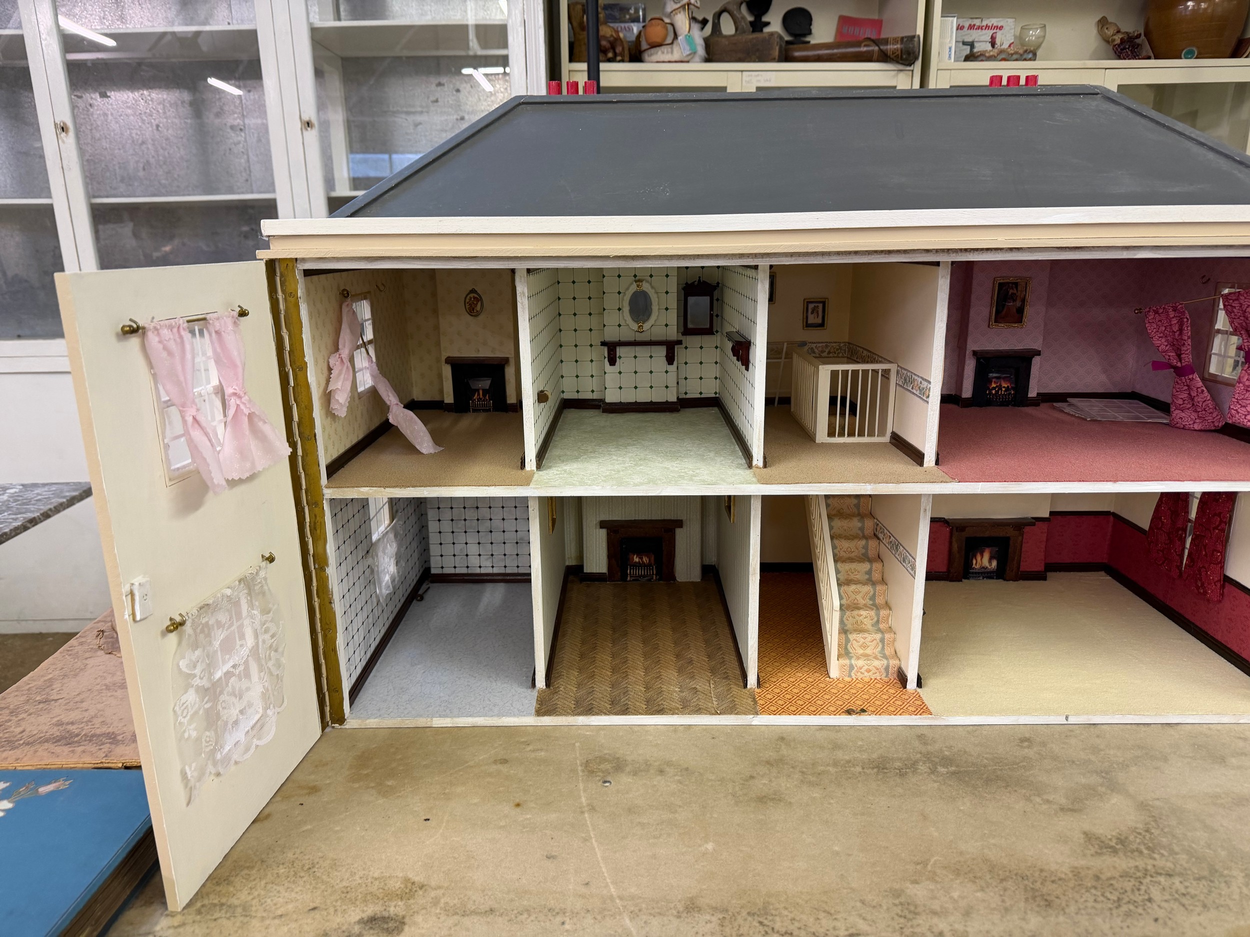 A hand made dolls house, with 2 section opening front.