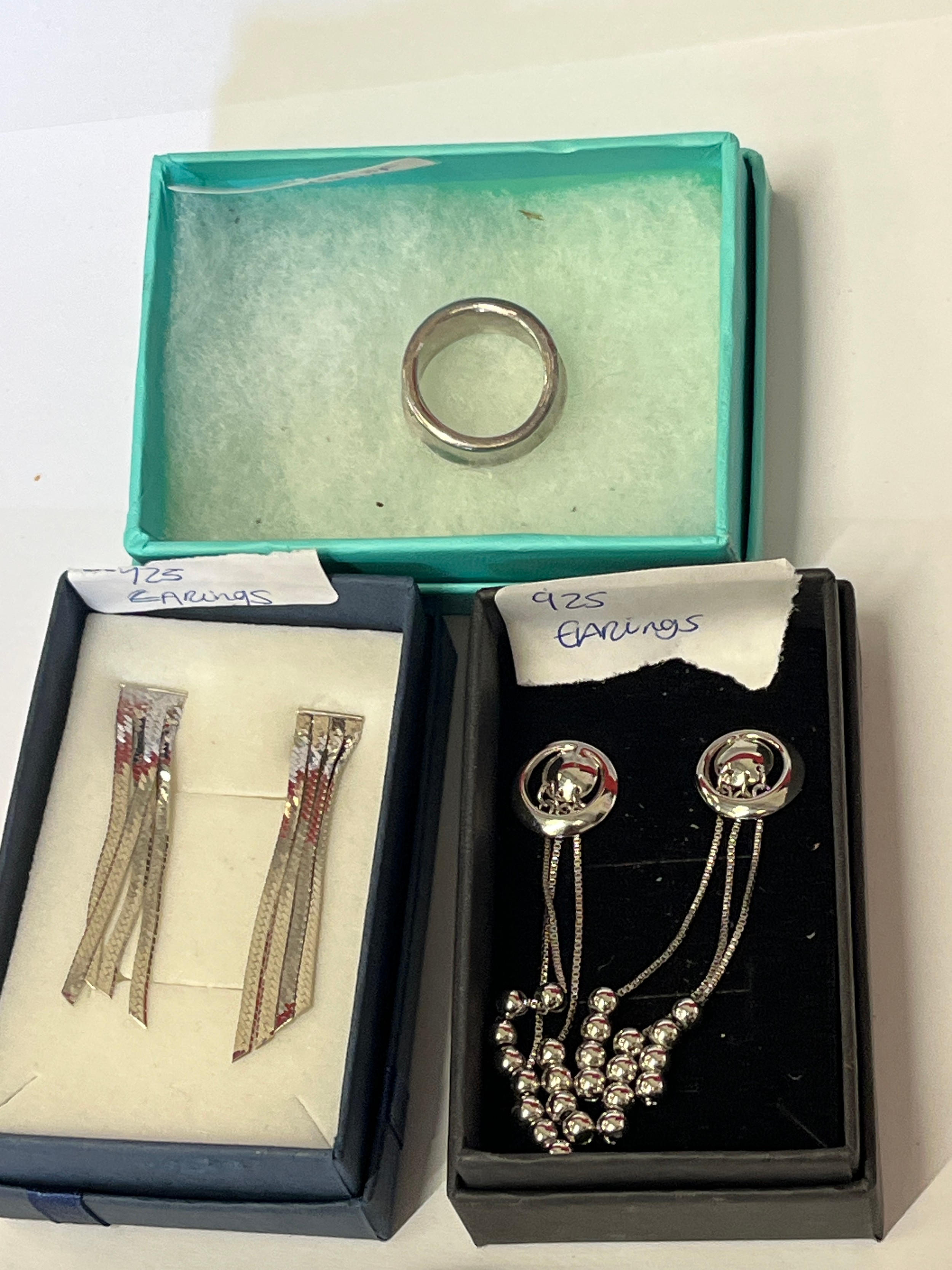 2 Pairs of 925 silver earrings and a ring in the style of Tiffany & Co