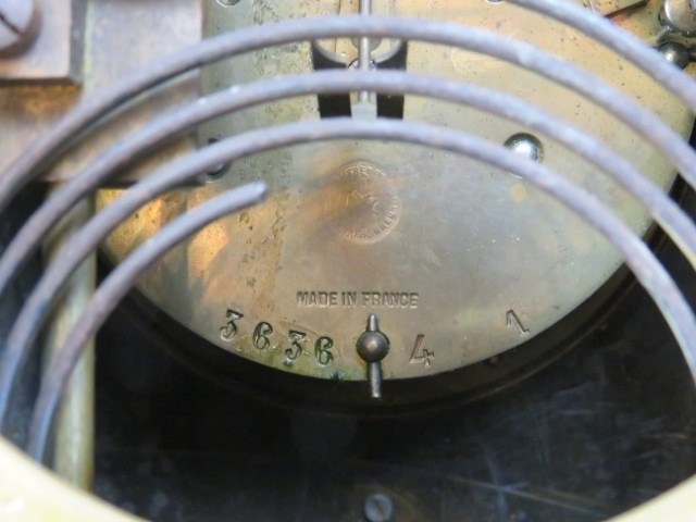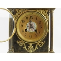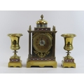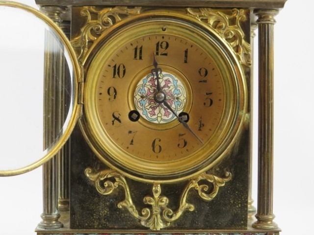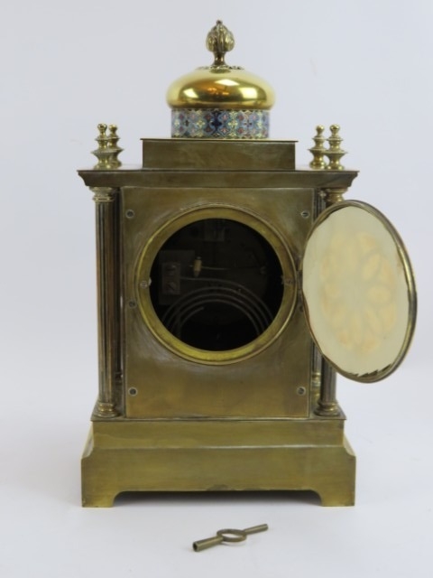 A French gilt brass cloisonné decorated striking clock garniture, late 19th/early 20th century. (3 items) Clock: 35.5 cm height.