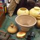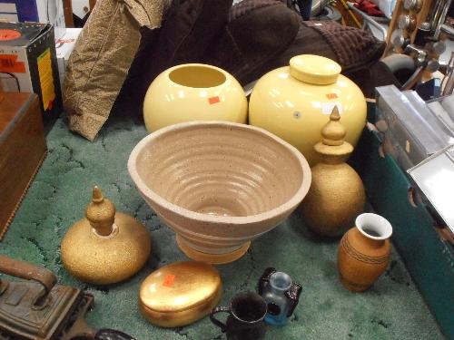 QUANTITY OF STUDIO BOWLS, IRON ON TRIVET, TRINKLET BOWL AND LID ETC.,
