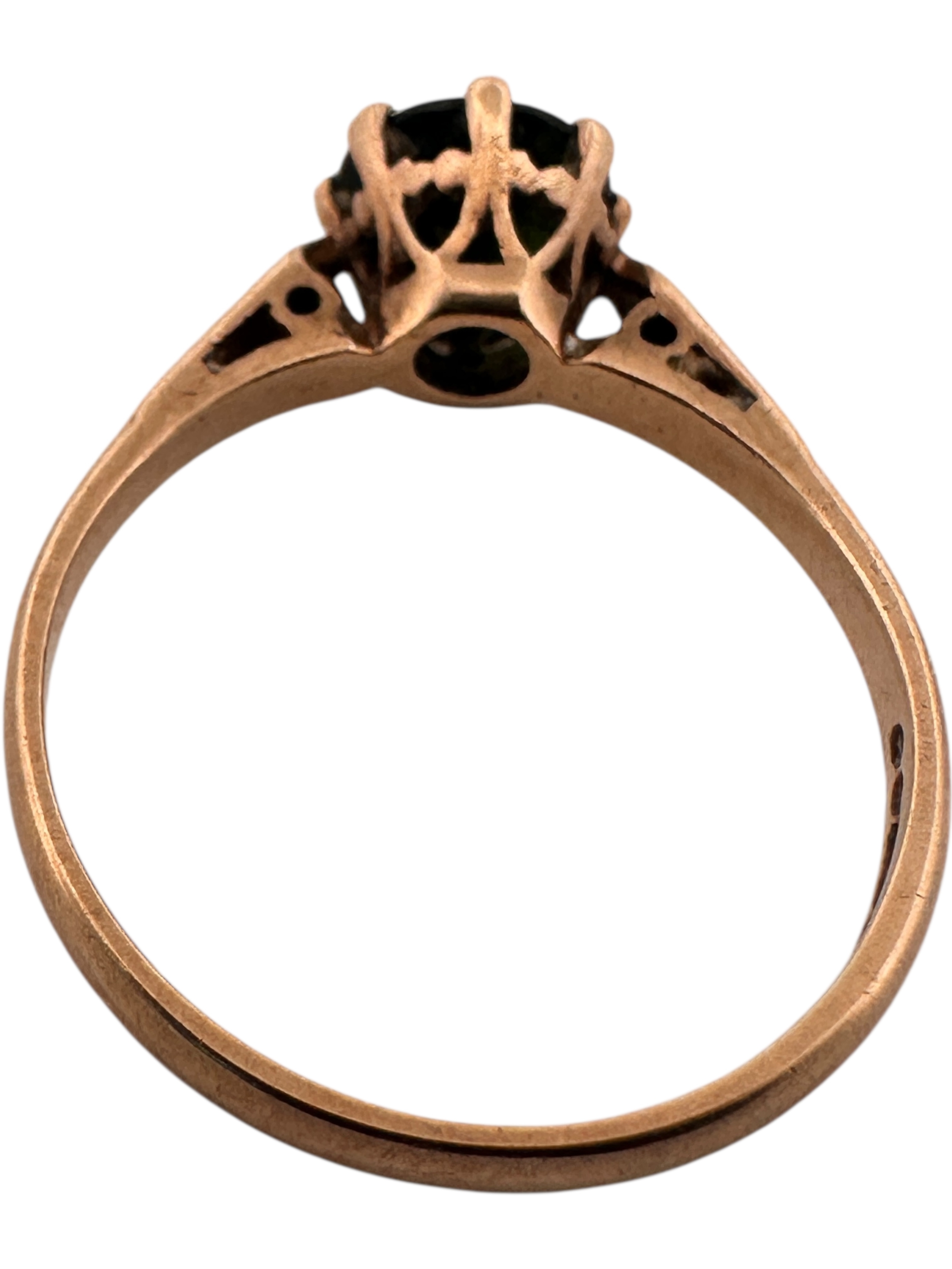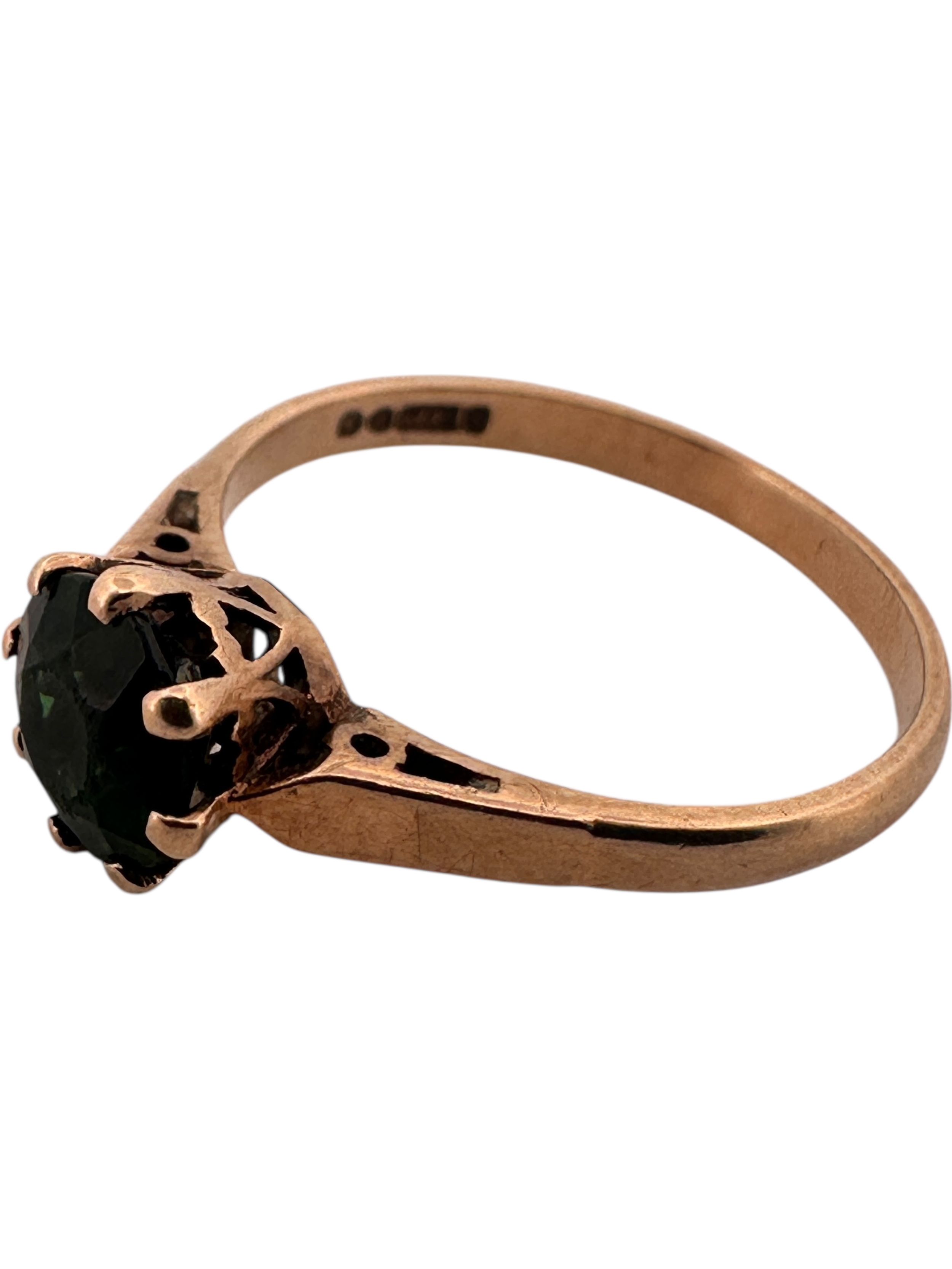 Nine Carat Gold Ring set with Dark Green Stone. Size O. 1.93g