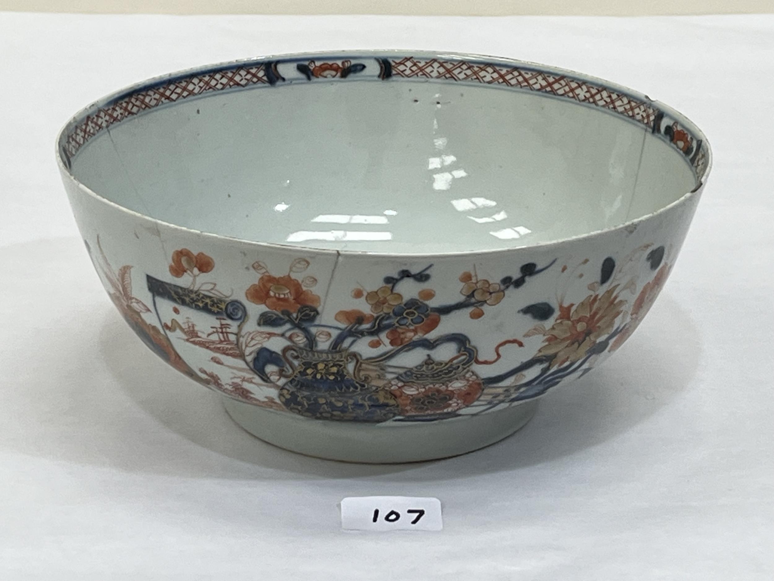 A Japanese Imari decorated bowl. 10¼' diam. cracks and rim chips