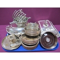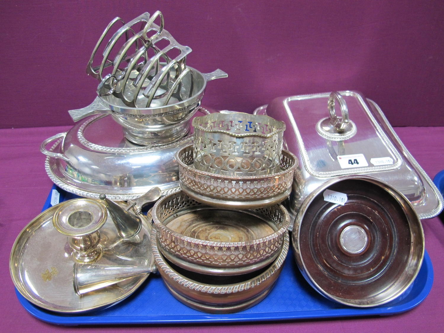 A Mixed Lot of Assorted Plated Ware, including hallmarked silver bottle coaster, bearing feature hallmarks, plated on copper examples, quaich, etc:- One Tray