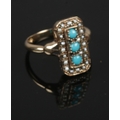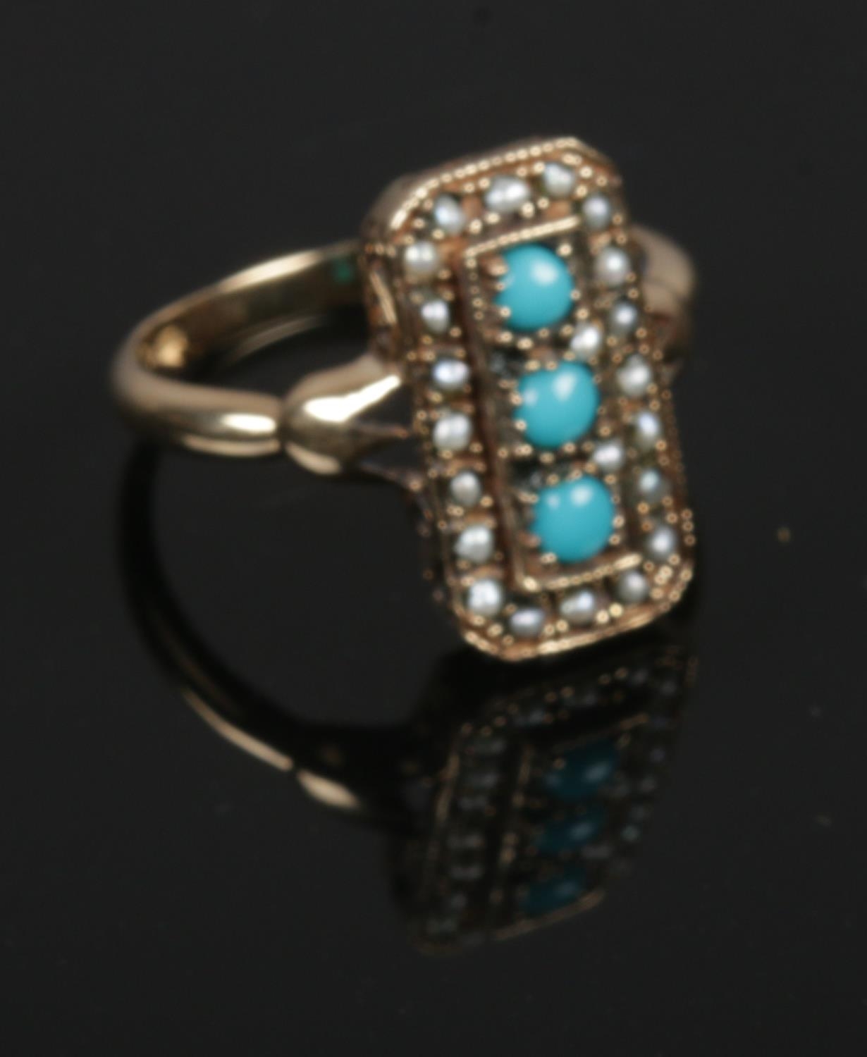 A 9ct gold seed pearl & Turquoise stone dress ring, size 0, gross 3.0g