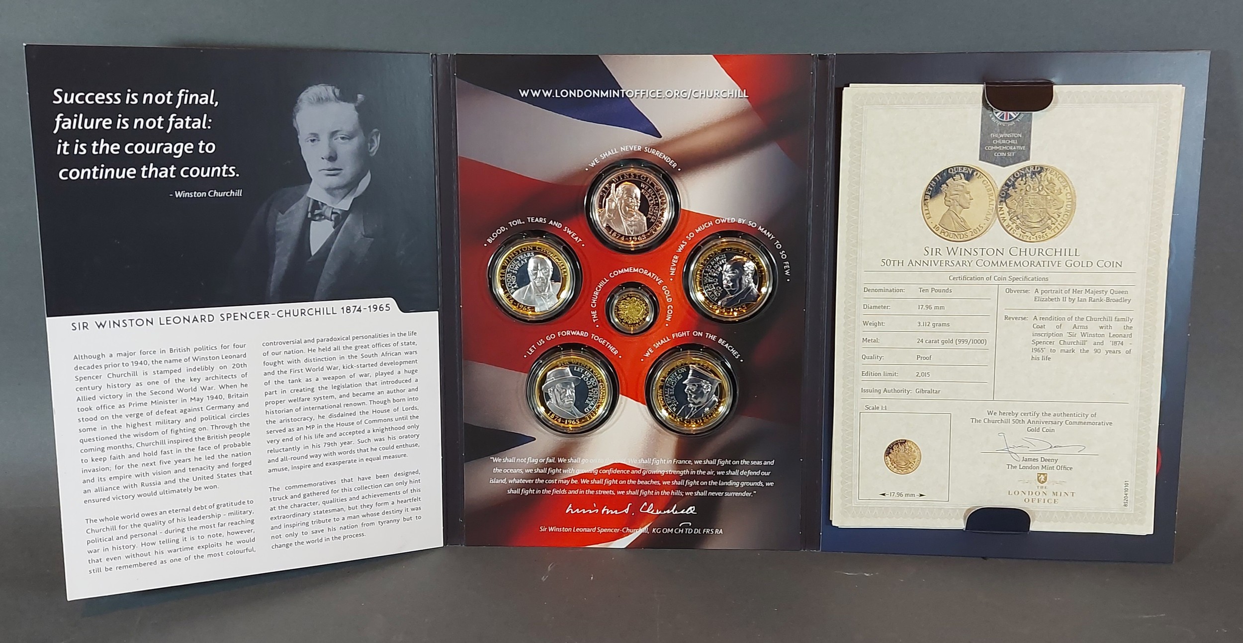PLEASE COLLECT A Winston Churchill Inspiration to the Nation proof coin set containing a 50th anniversary gold coin 3.1gms and five other proof coins