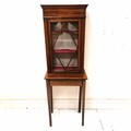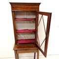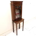 Small antique mahogany glazed display cabinet on stand - 52cm x 32cm x 154cm