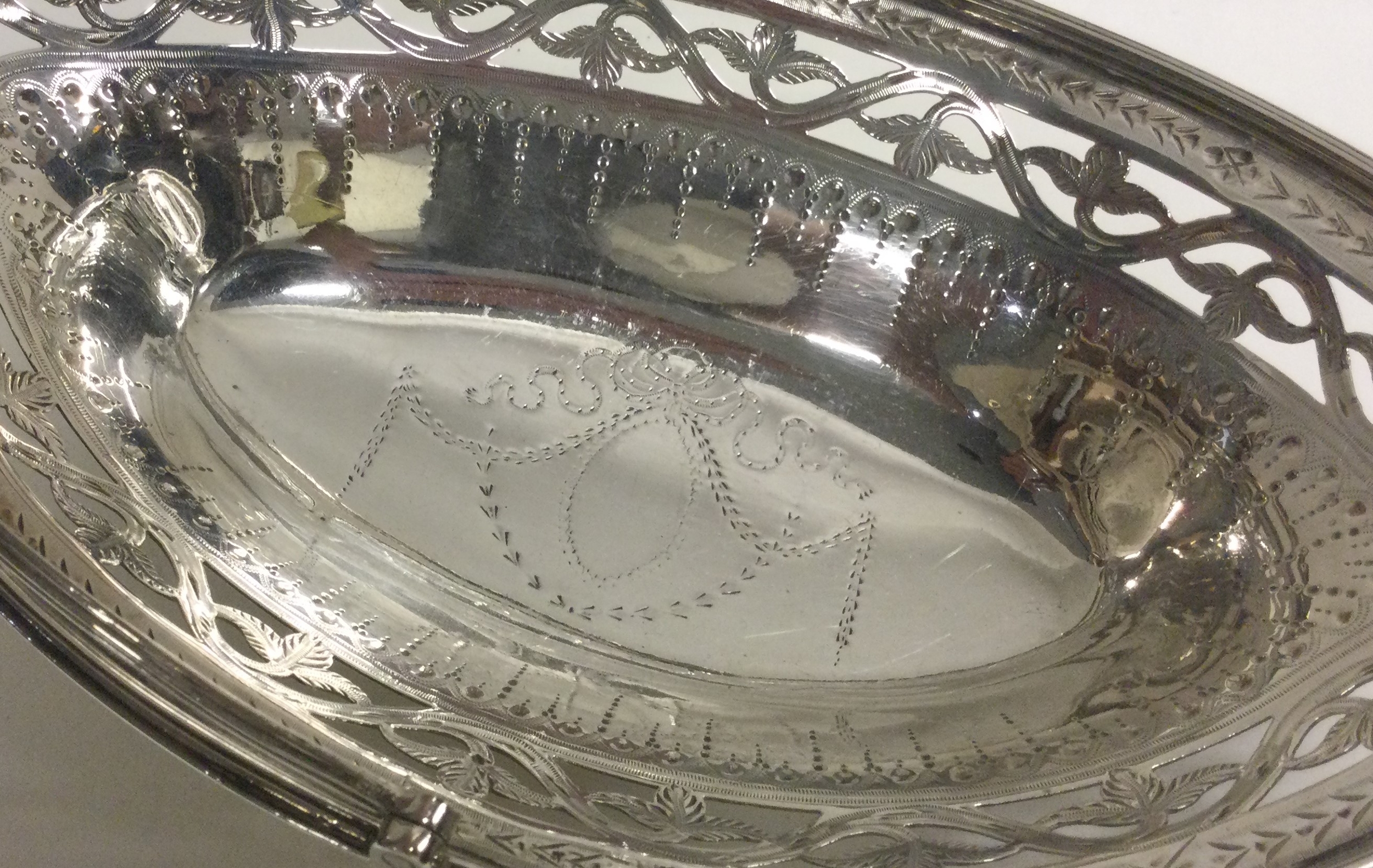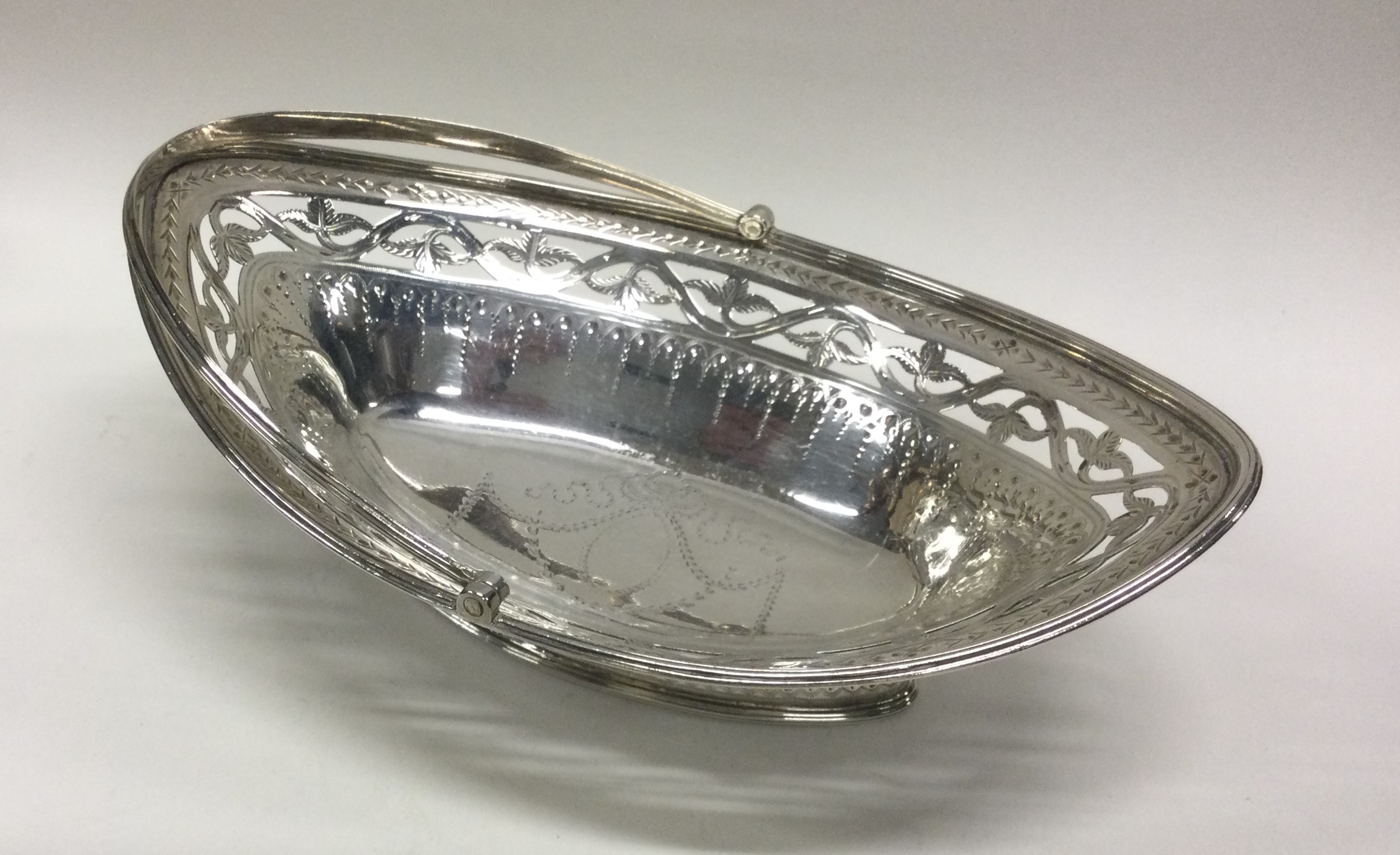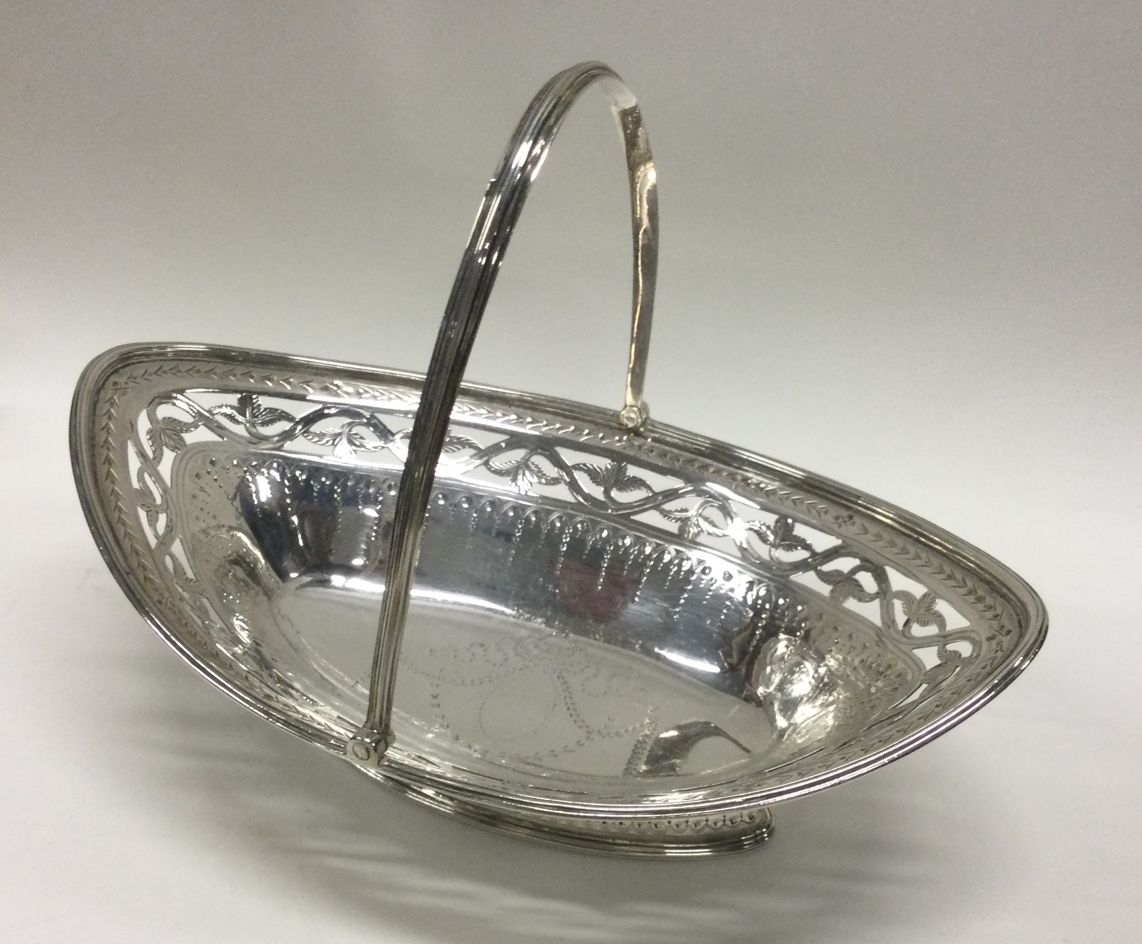 A good Georgian silver boat shaped swing handled basket with bright cut decoration. London 1786. Approx. 171 grams. Est. £120 - £150.