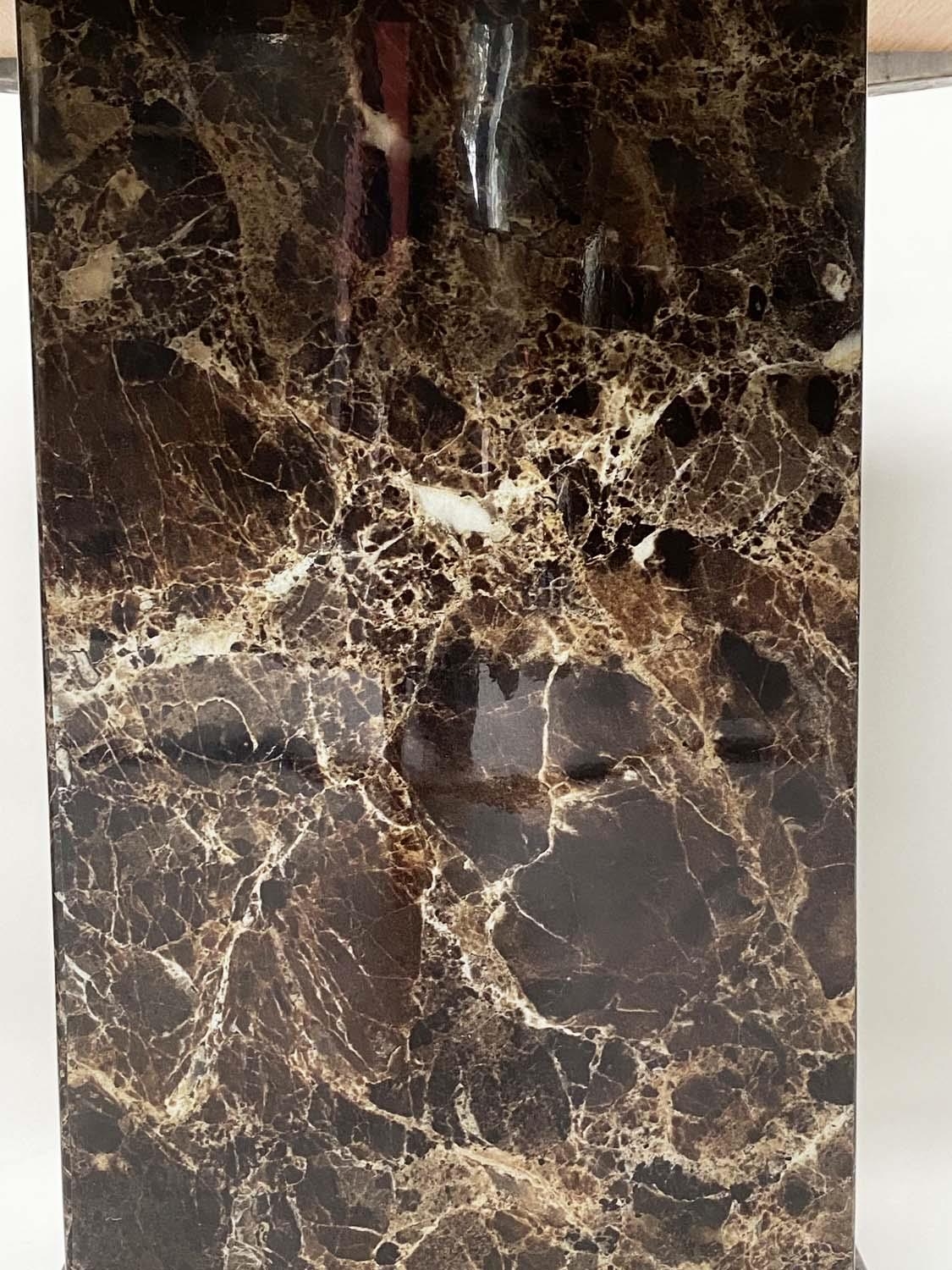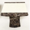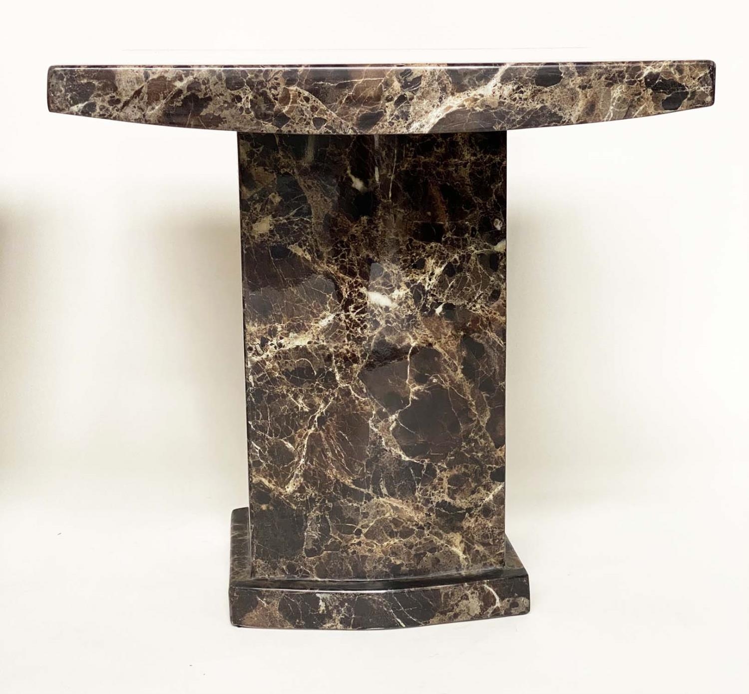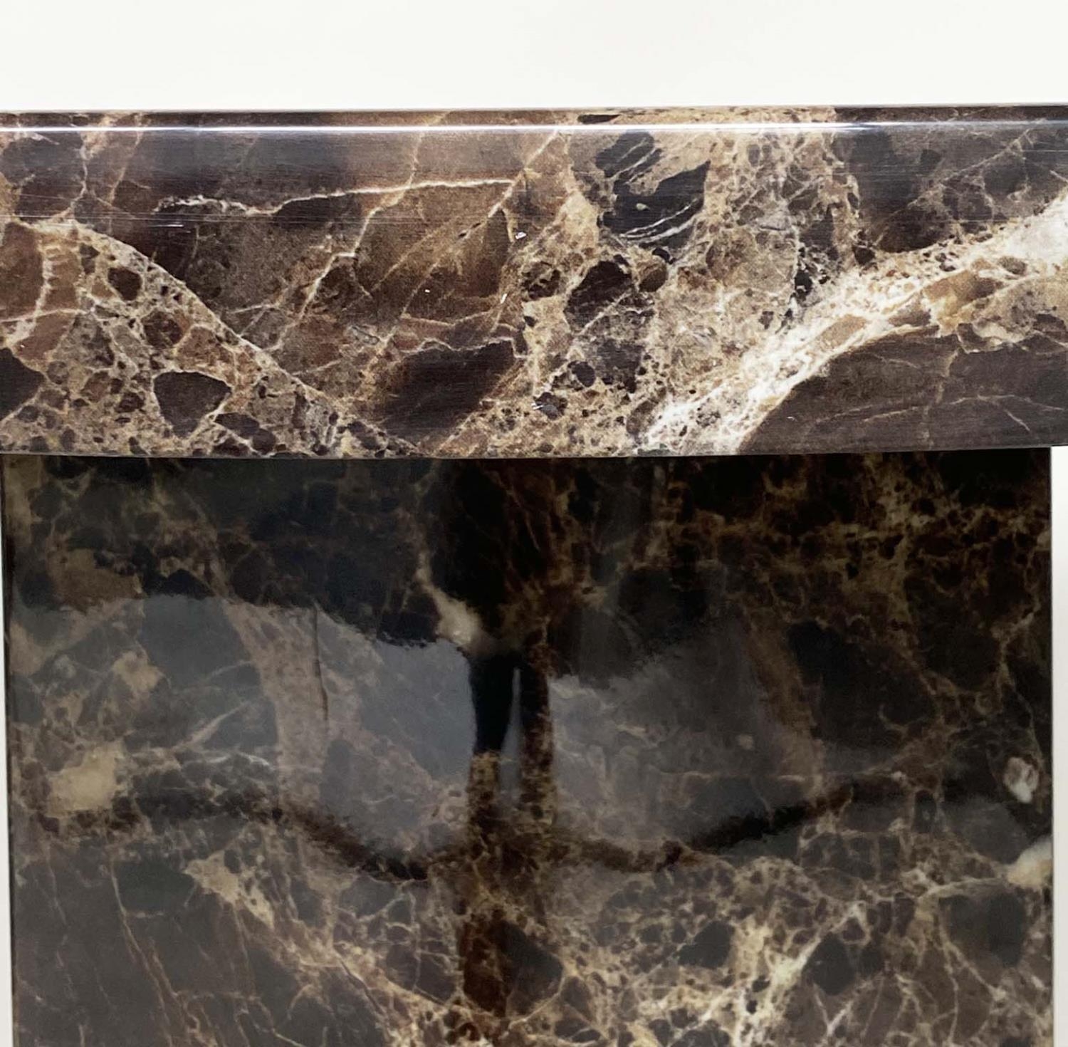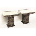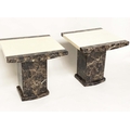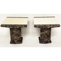 LAMP TABLES, a pair, variegated and cream polished marble each bicolour with plinth supports, 55cm x 55cm x 55cm H. (2)