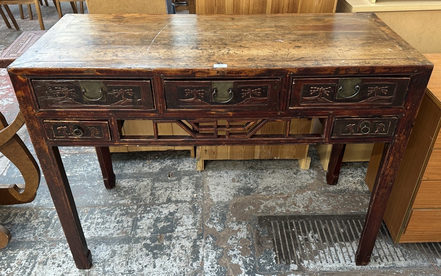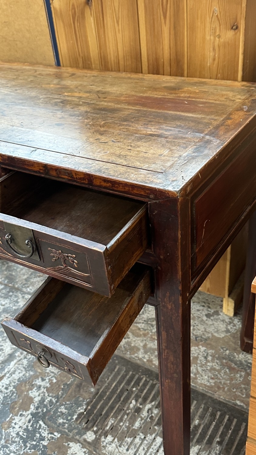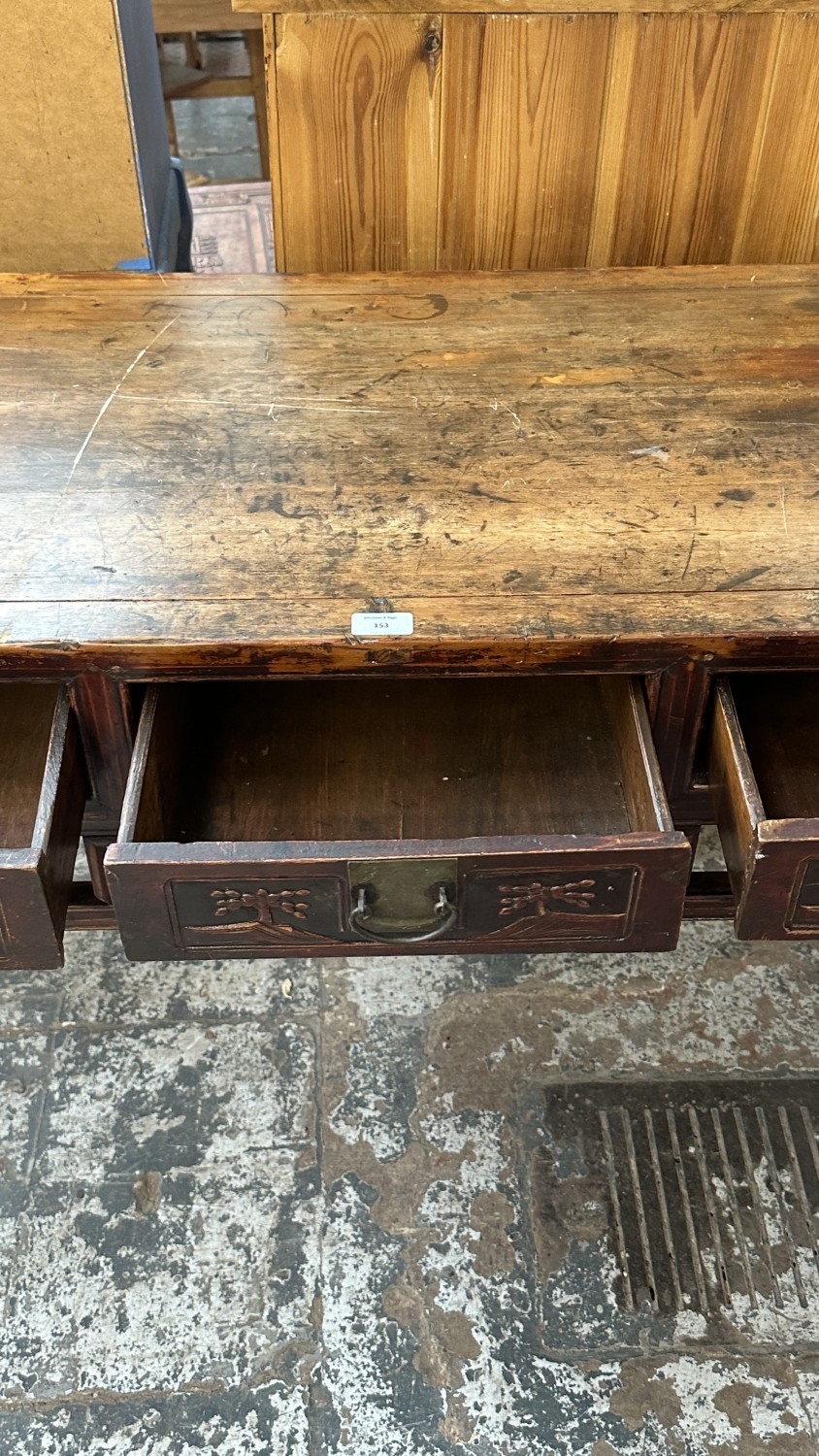 An antique Chinese lacquered carved hardwood console/altar table - approx. 88cm high x 120cm wide x 51cm deep