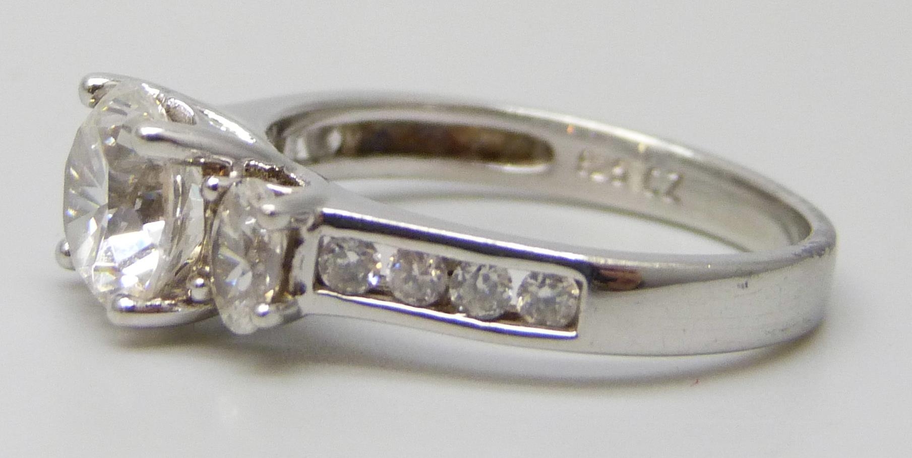 A silver ring set with white stones, S
