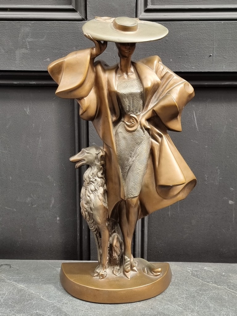 An Art Deco style durastone figure, by Austin, 49cm high....