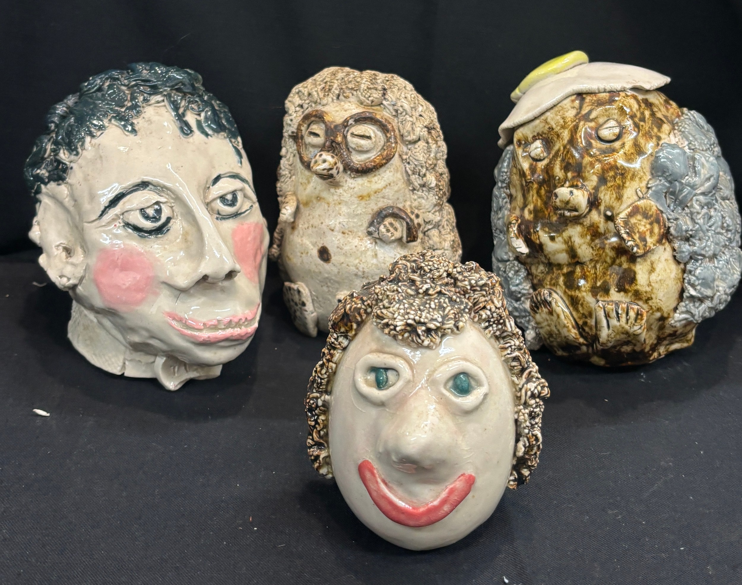 Selection of amateur art, pottery ornaments