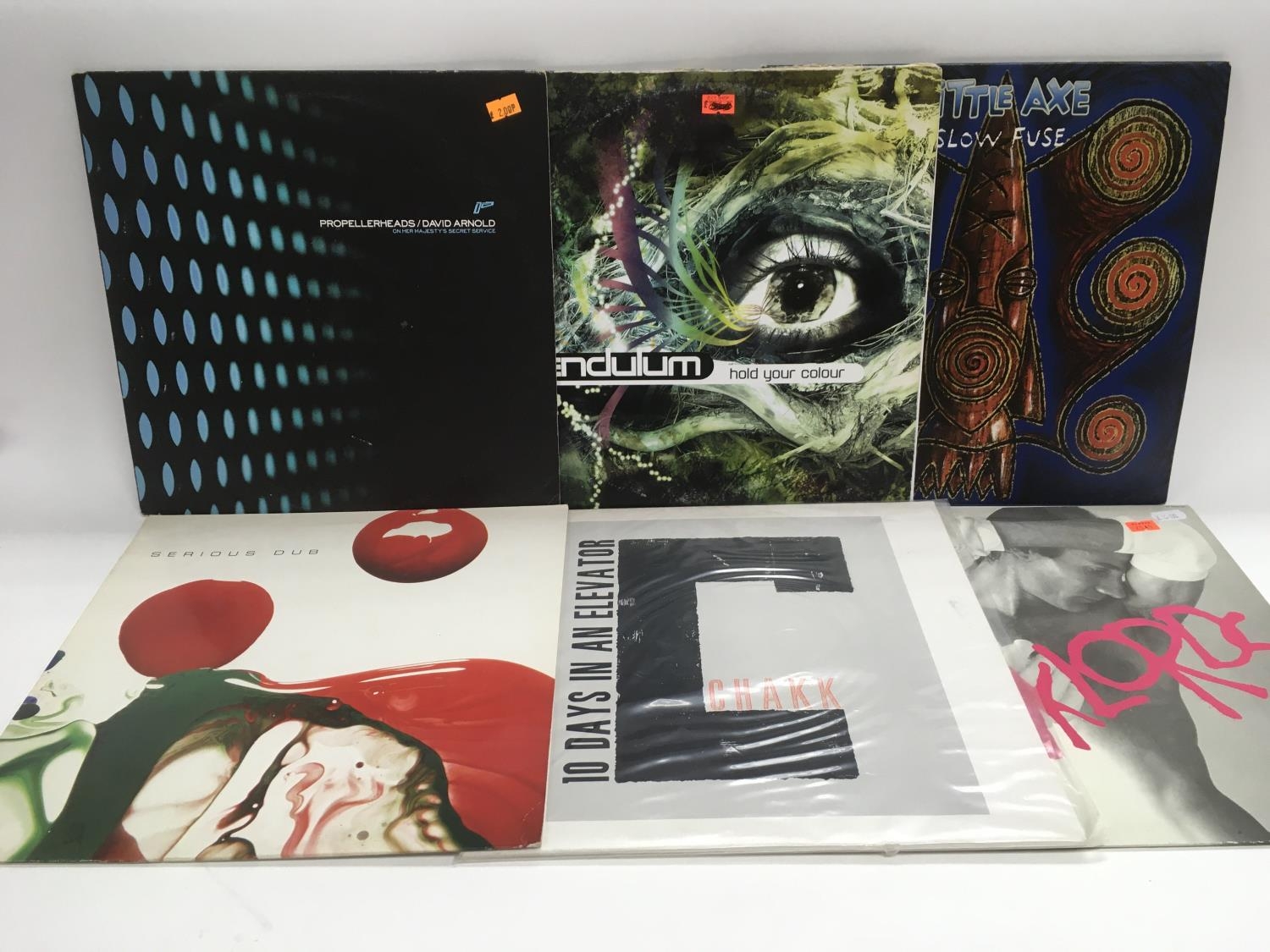 Six electronic dance and dub LPs and 12 inch singles by various artists including Pendulum, Little Axe, Propellerheads and others.