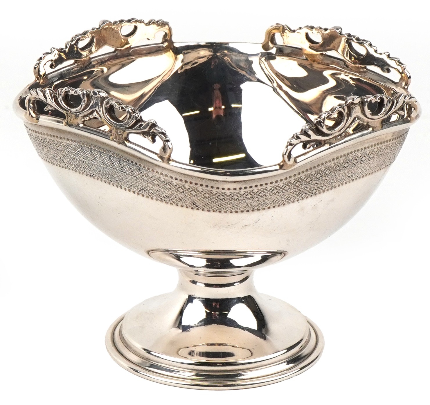 A Kappa Gallery Greek silver footed sweetmeat dish with pierced decoration, 8.5cm high, 108.8g, with box and certificate.