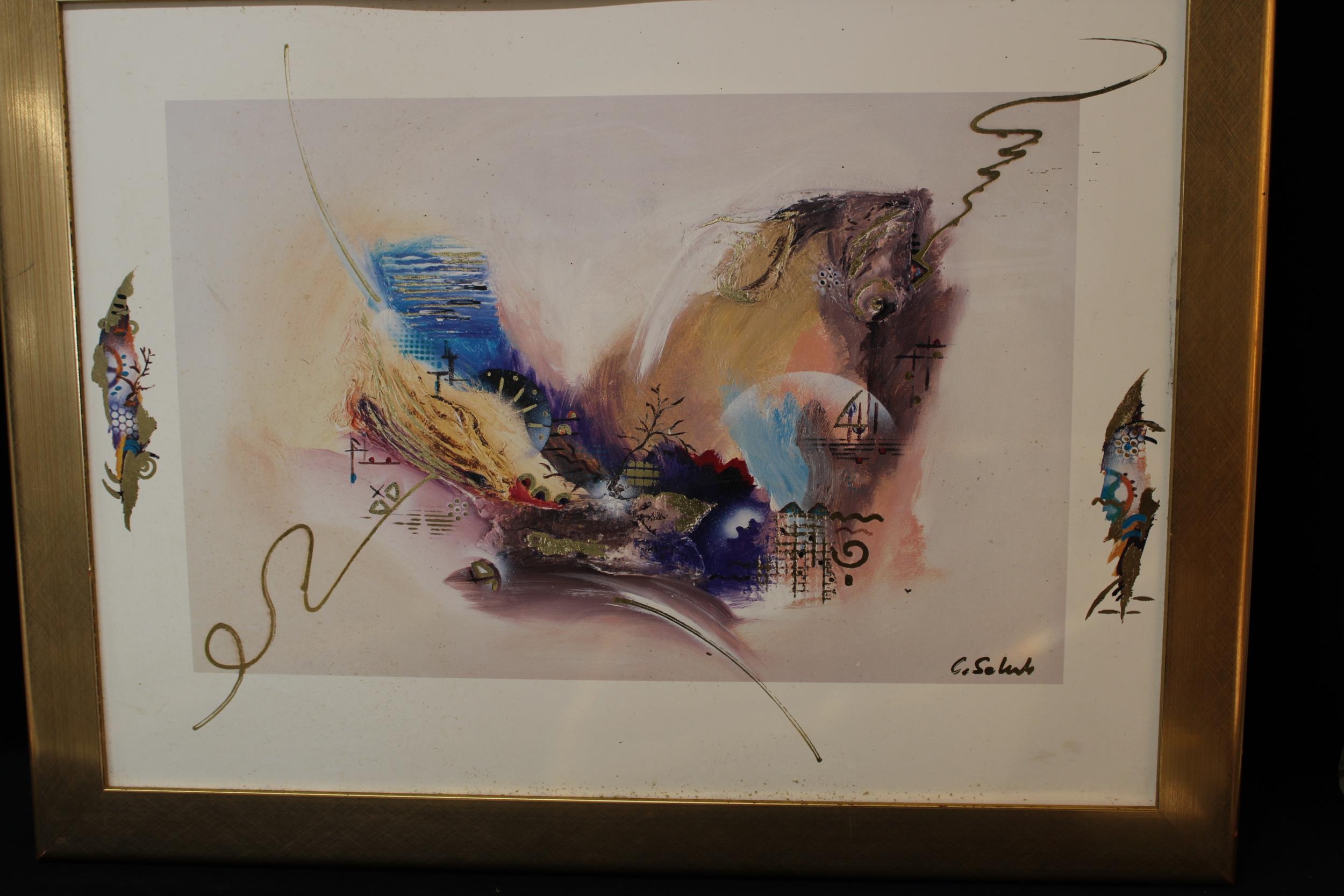 A large modern framed abstract picture - 70cm x 90cm