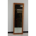 A rectangular wall mirror with gilt carved scrolling foliate frame, the plate within a narrow inner slip, designed for portrait hanging, 64cm x 21cm.