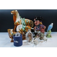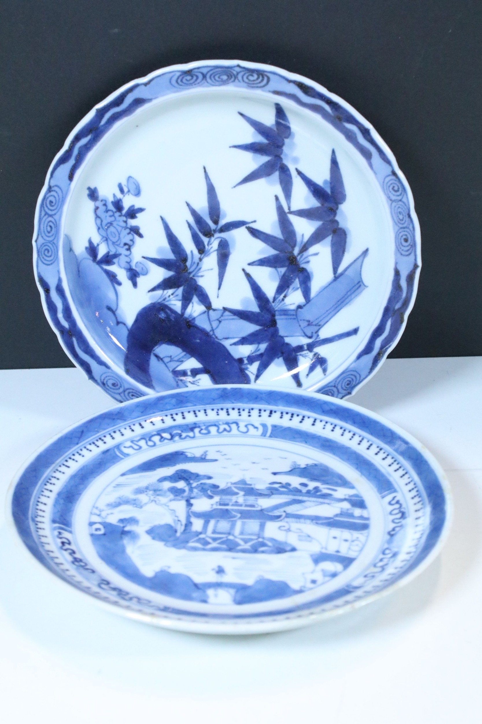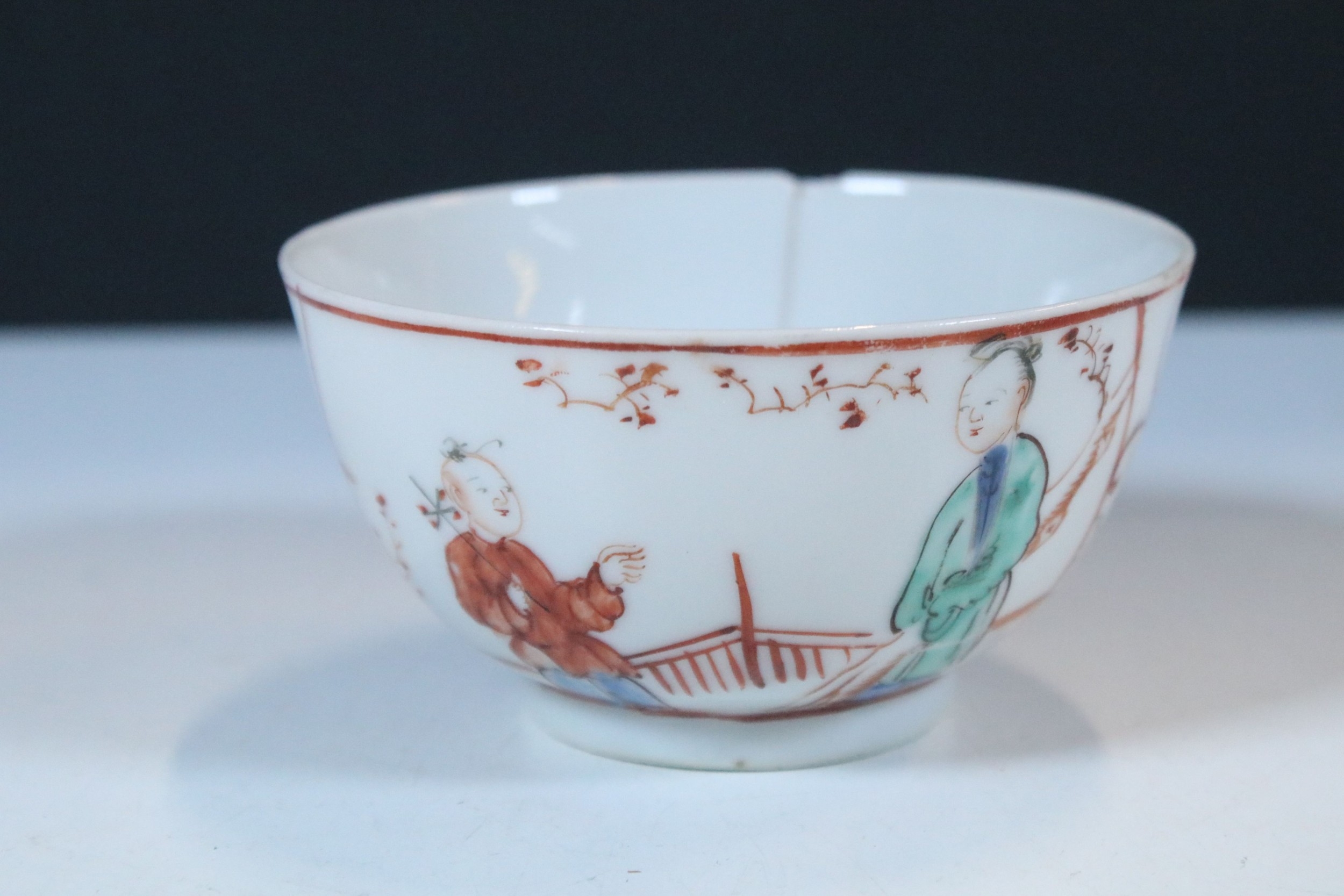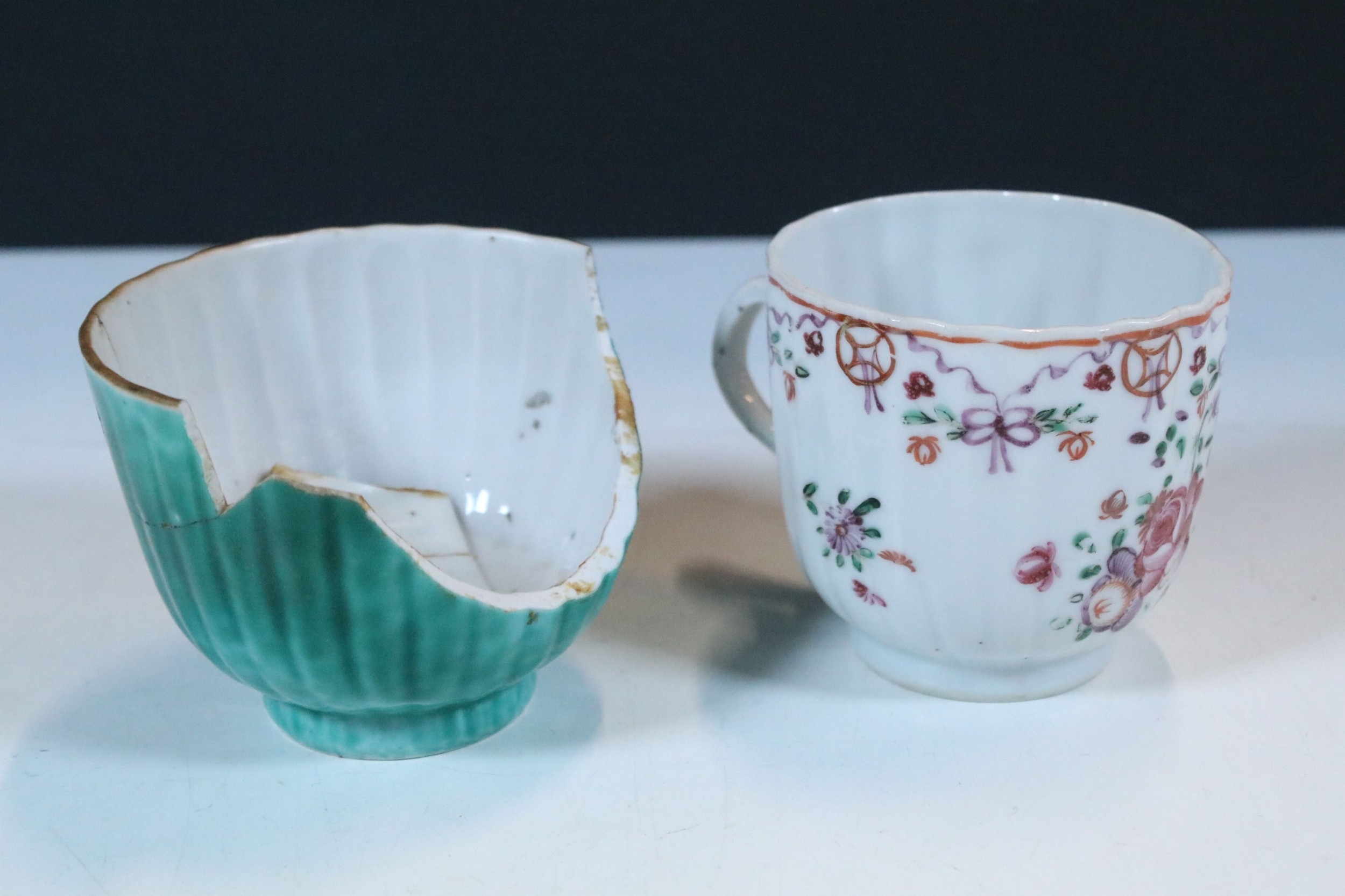 Collection of 18th century and later Chinese porcelain teawares, to comprise famille rose tea cup, two tea bowl, a Chinese blue and white tea cup, a lavender jade buddha, etc. together with two blue and white plates (8)