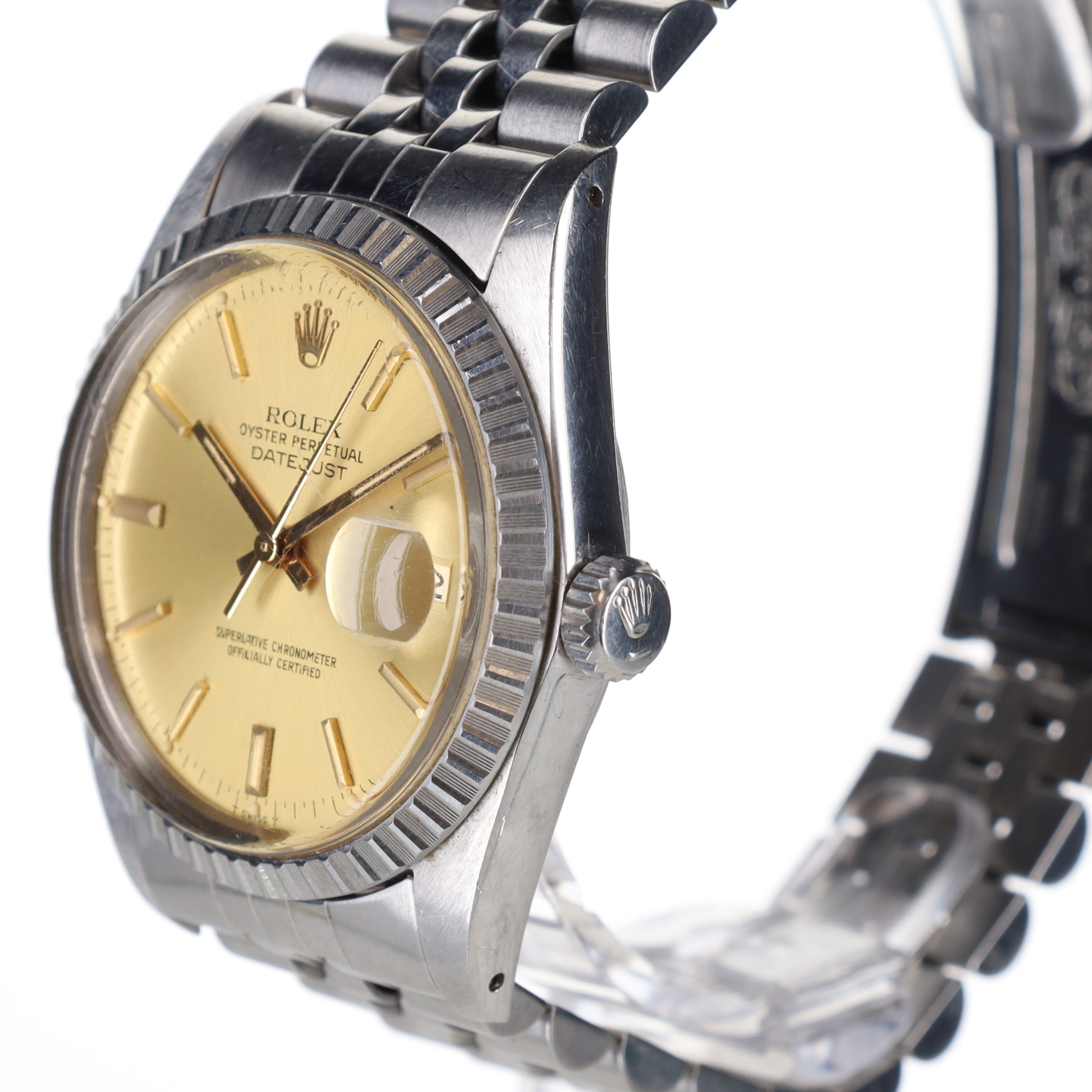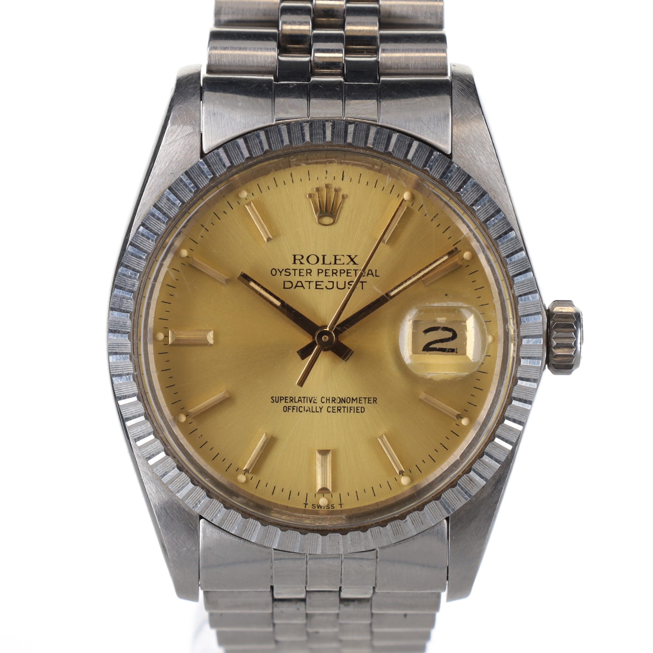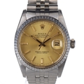 Rolex - Datejust 1981 Steel Oyster Perpetual Watch. Rolex Cal. 3035 Automatic movement. Case and bracelet made from stainless steel. Bracelet code: 62510H. End link code: 555. Acrylic crystal with cyclops magnified date window at 3 o'clock. Champagne dial with gold hands and hour markers, Rolex crown logo at 12 o'clock. Dial signed 'Rolex Oyster Perpetual Datejust Superlative Chronometer Officially Certified' in black font. Serial No. 6662231. Works, runs and holds time. No box or papers.