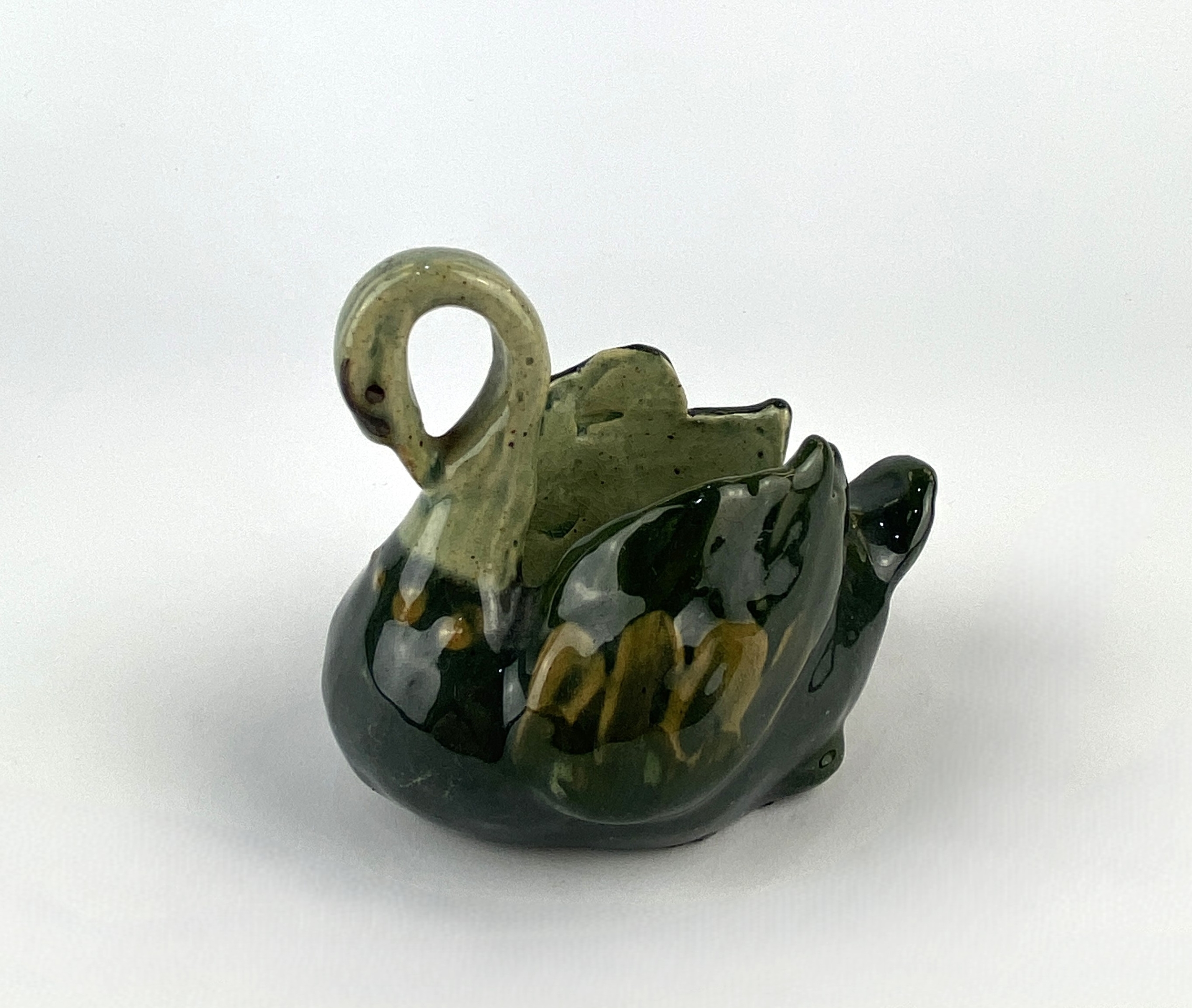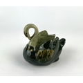 A Lauder Barum green glazed pottery swan vase 8cm high