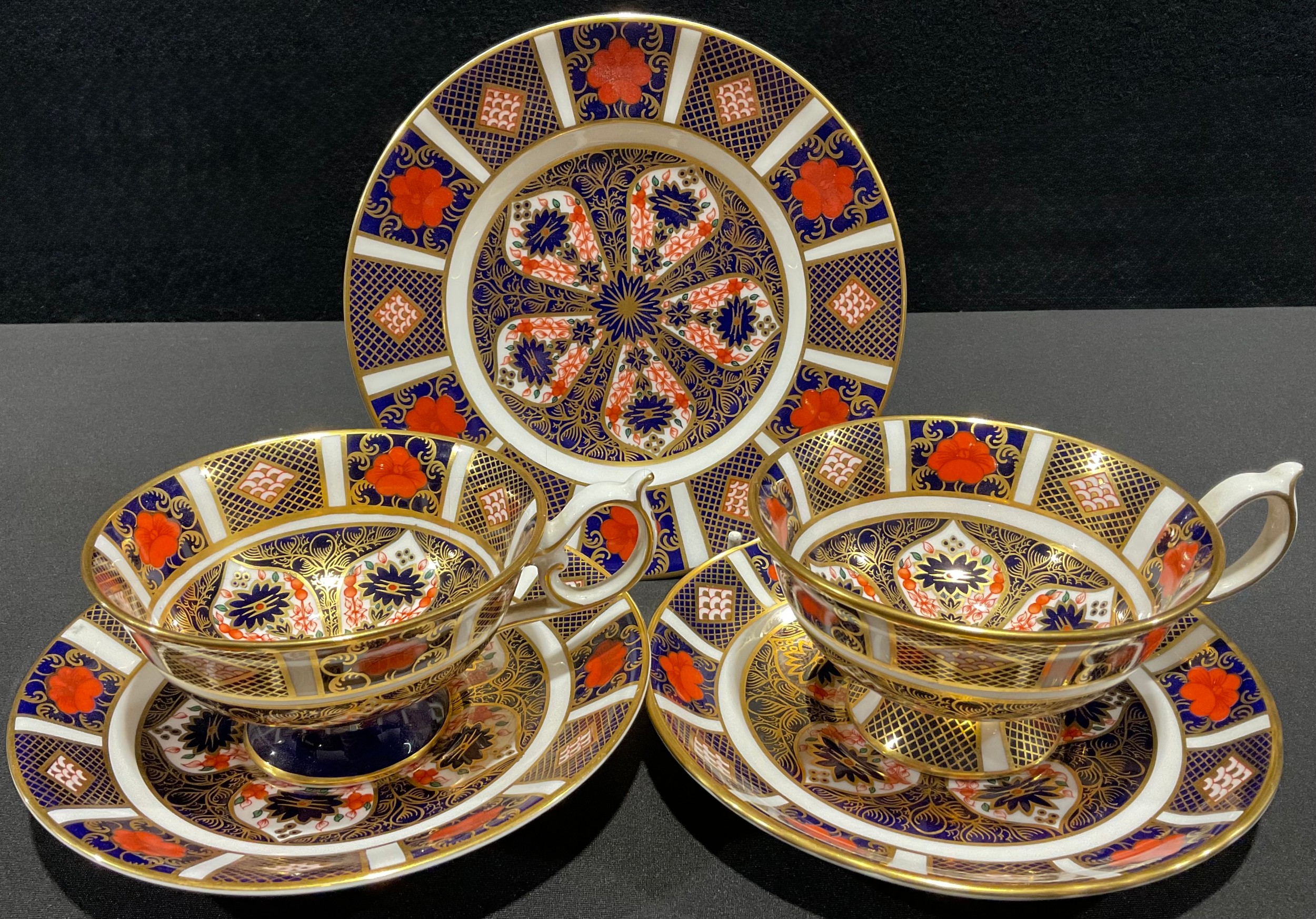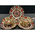 A pair of Royal Crown Derby Imari 1128 pattern tea cups and saucers, first quality; a single 1128 pattern tea plate, second (5)