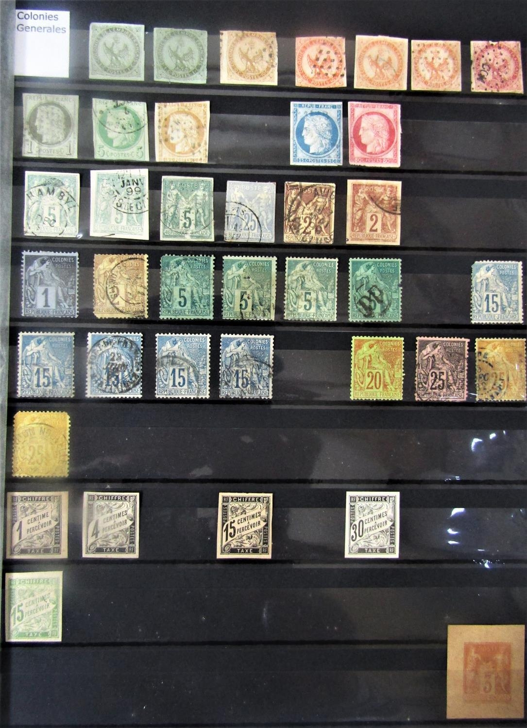 Two stockbooks of Mint and Used stamps from the French Colonies, from General Colonies to Wallis & Futuna (displayed in cabinet)