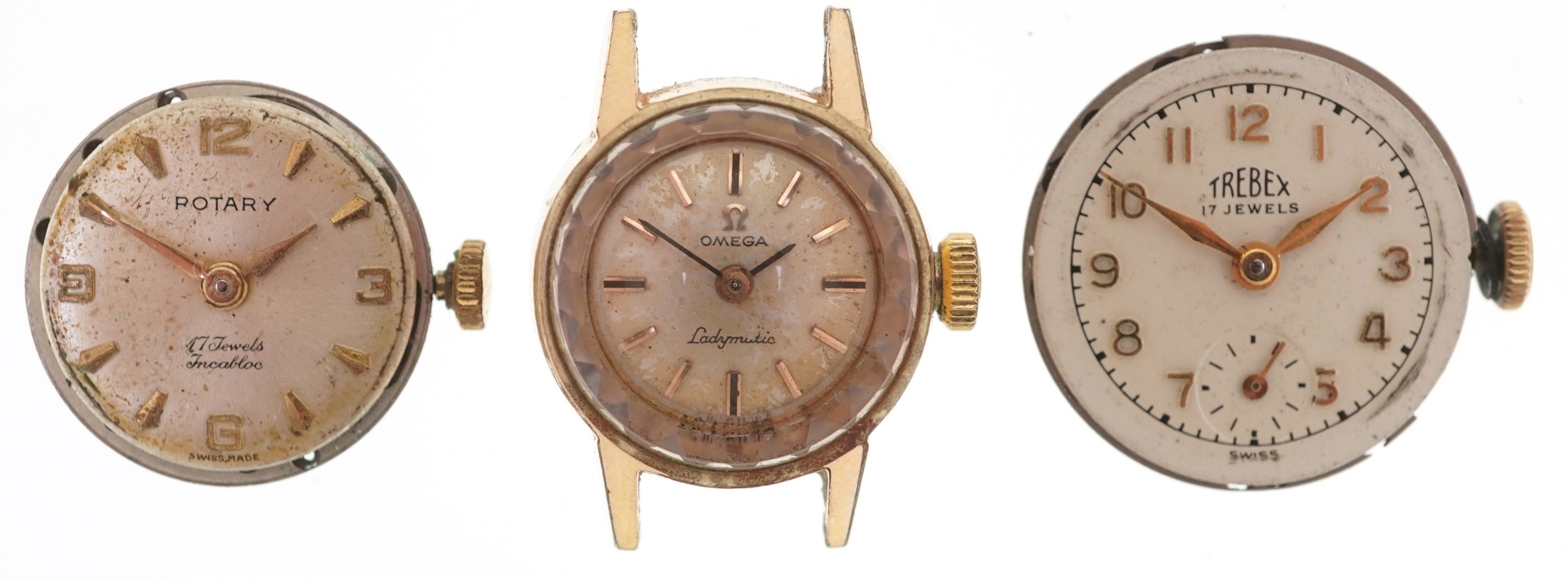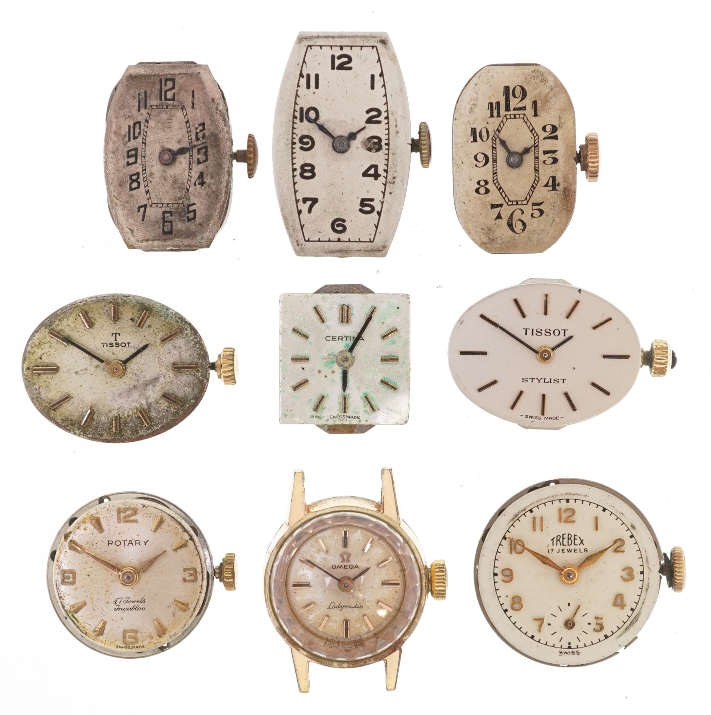 Antique and later ladies wristwatch movements including Tissot, Trebex and Omega.