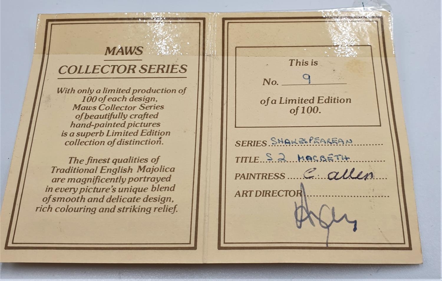 MAWS & Co 47cm x 26.5cm FRAMED TWIN TILE PICTURE "MACBETH" (Limited Edition 100 This One Being No 009) (Certificate).
